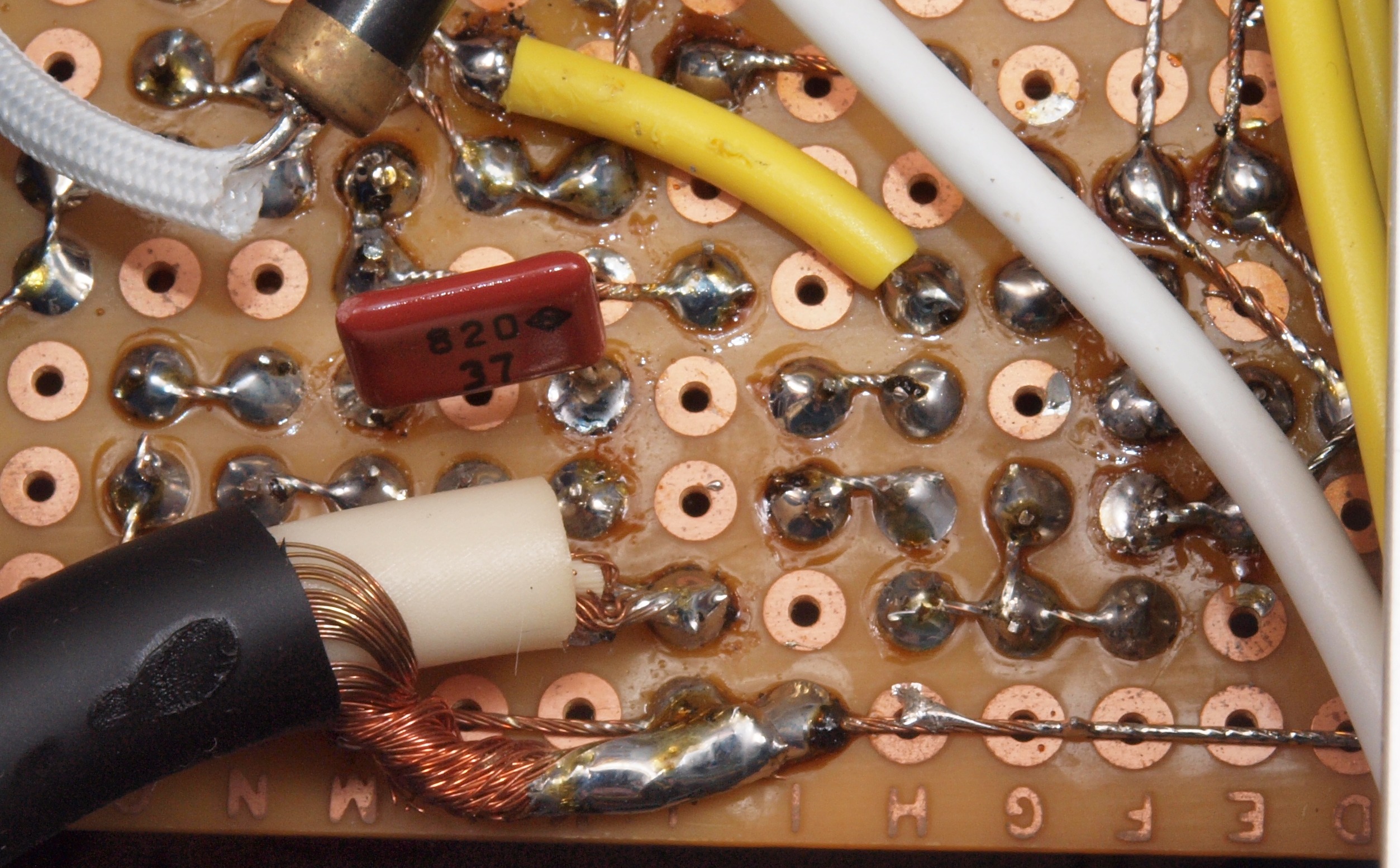 | A71. 点検中 配線のハンダ付け。 プロの絡げ配線とは異なる、又端子の裏側までハンダが載っていない。 |