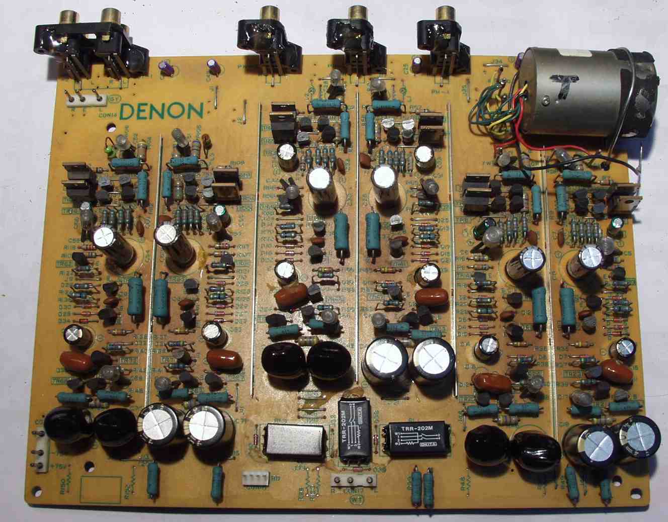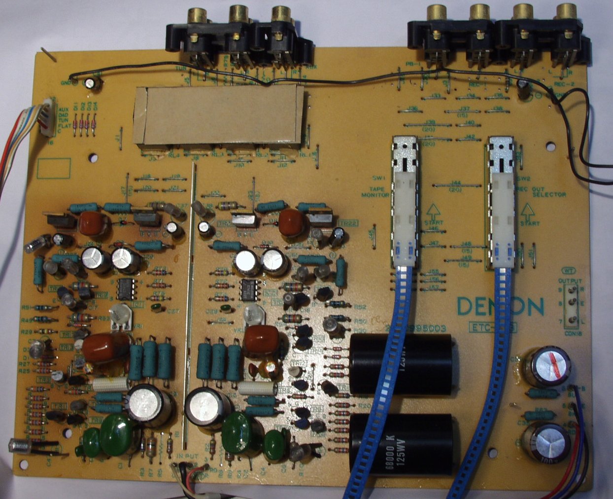 | C. 修理状況 C11. 修理前 EQ−HEAD-AMP基板 左=MM 中=MC 右=トランス使用MC 上右端がMC−トランス |