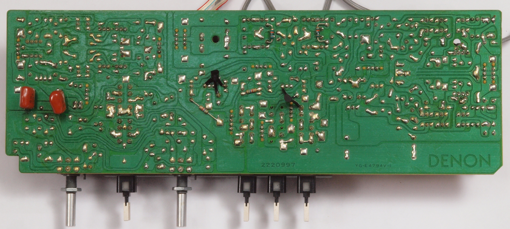 | C23. 修理前 EQ−AMP基板裏。 RCA端子が半田補正してある。 | ||||||||||||||||||||||||||||||||||||||||||||||||||||