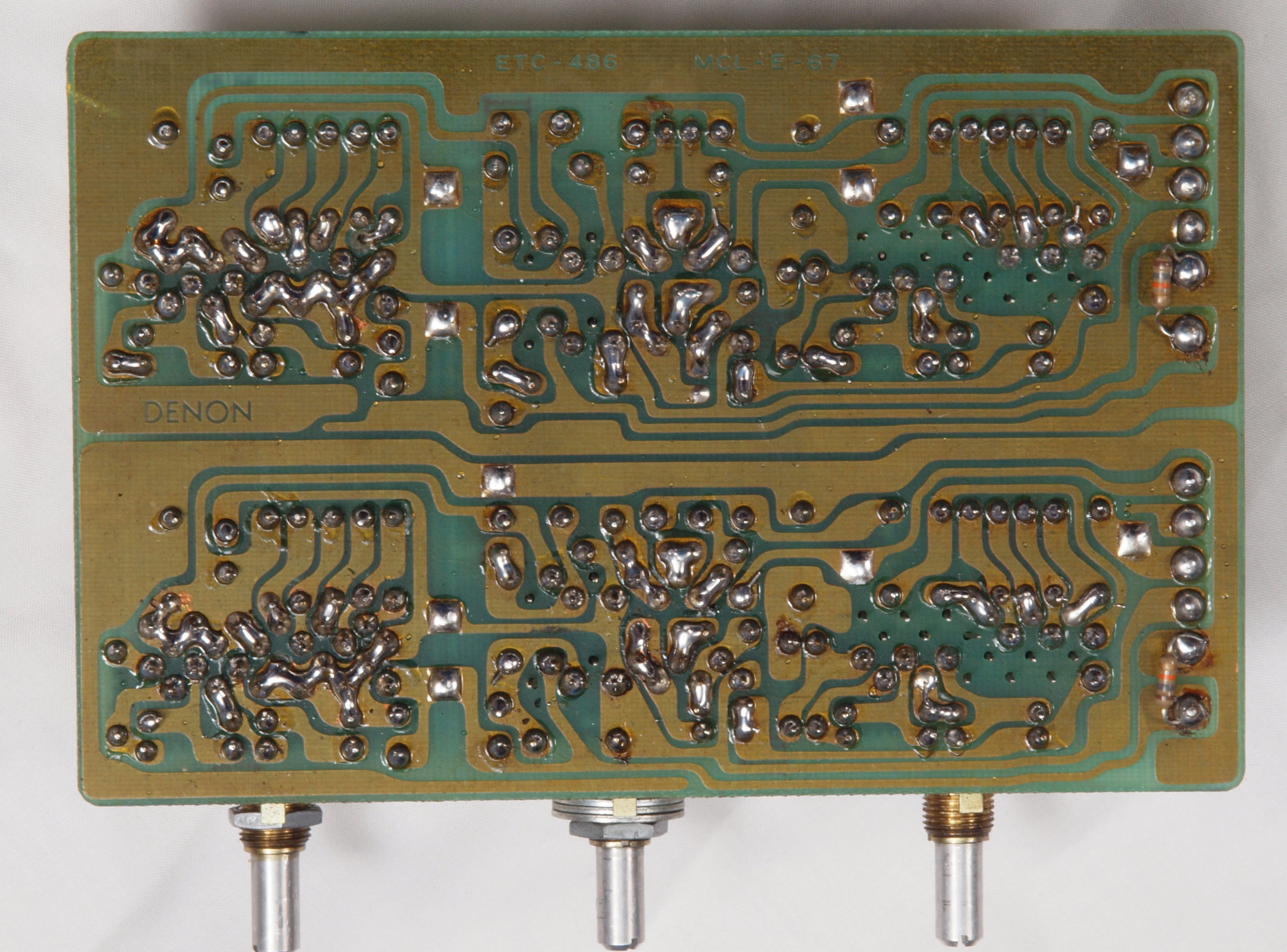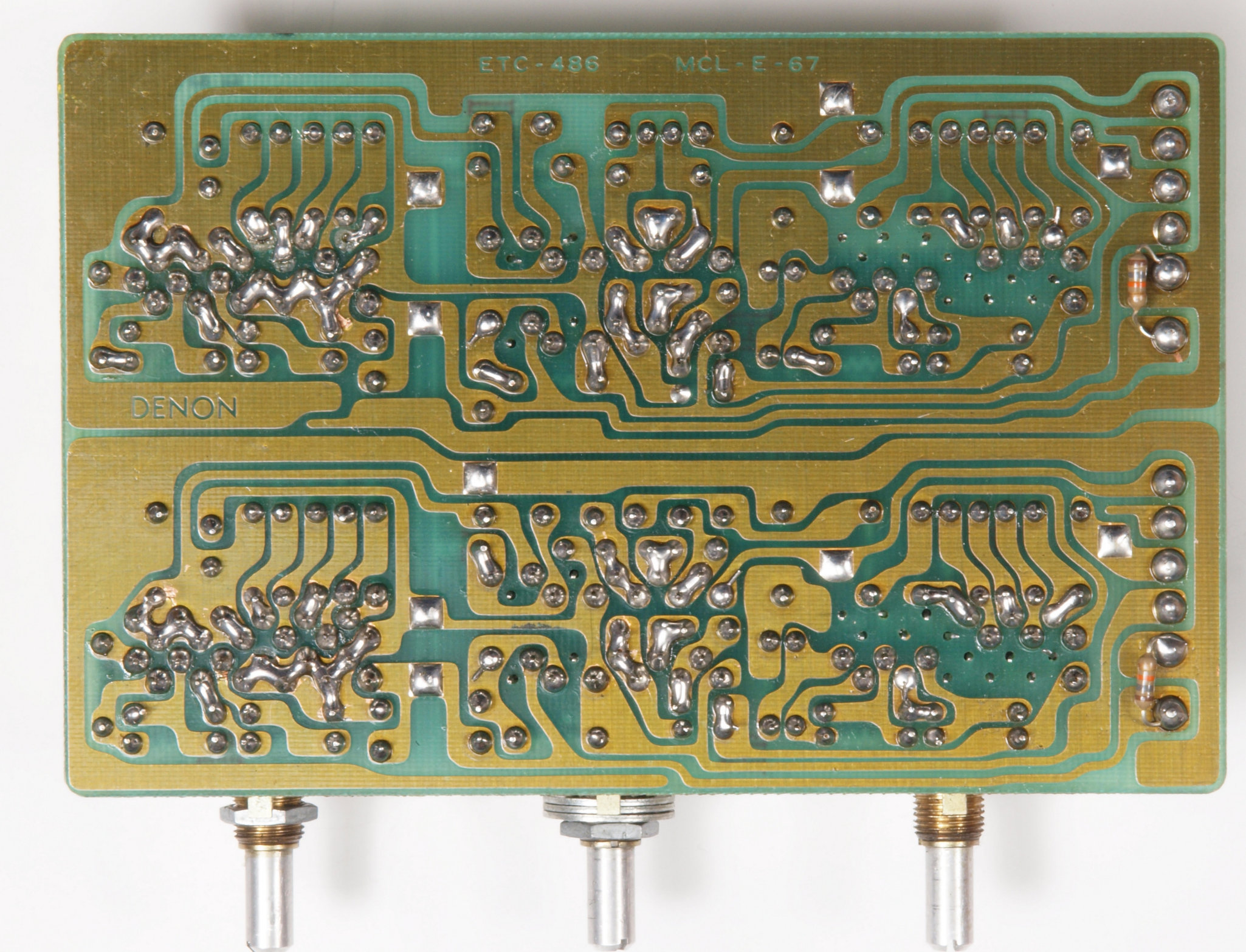 | C64. 修理(半田補正)後 トーン・コントロール基板裏。 全ての半田をやり修す | ||||||||||||||||||||||||||||||||||||||||||||||||||||||||||||||||||||||||