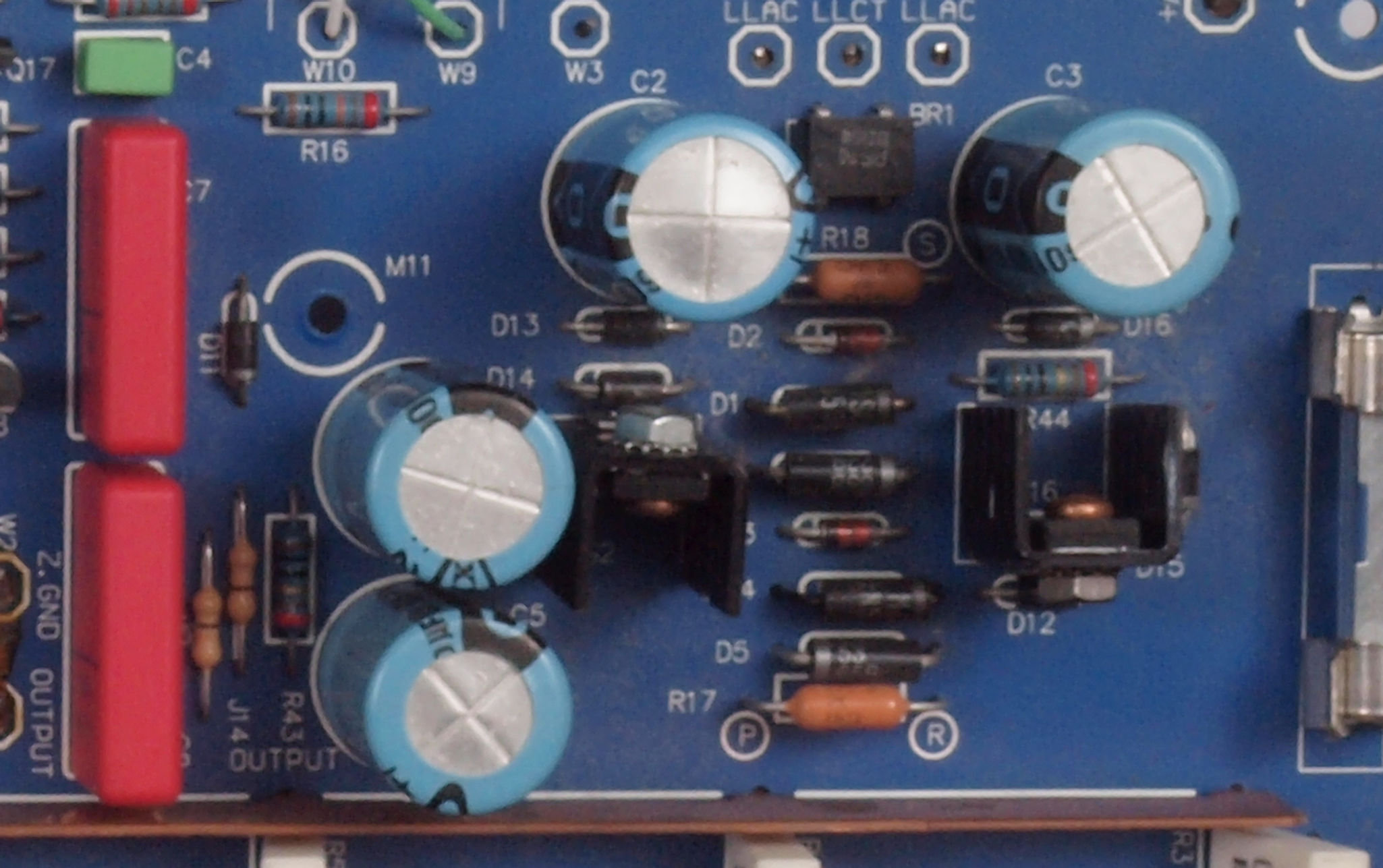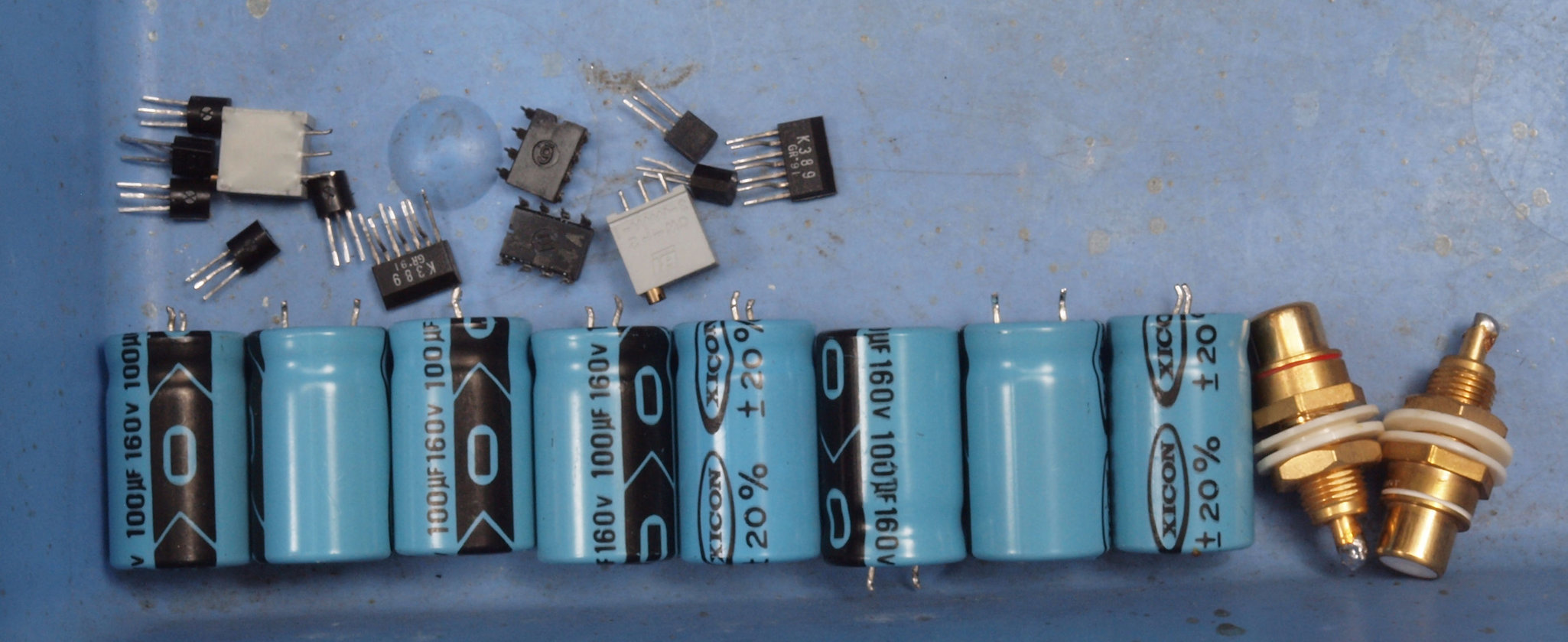 OP−AMP1個、電解コンデンサー4個、TR(トランジスター)4個交換。
