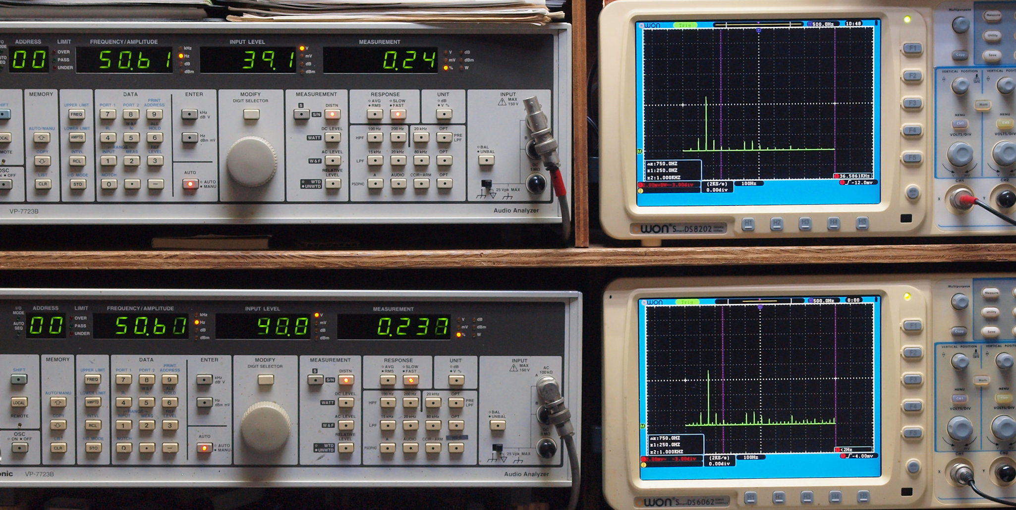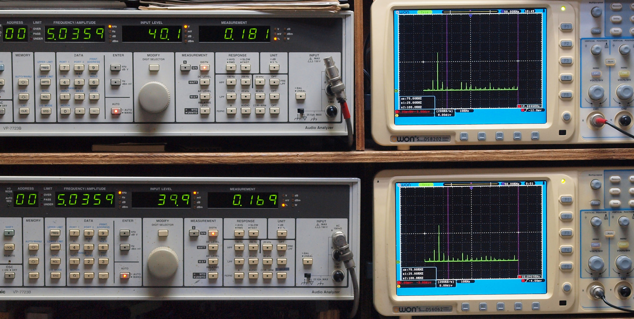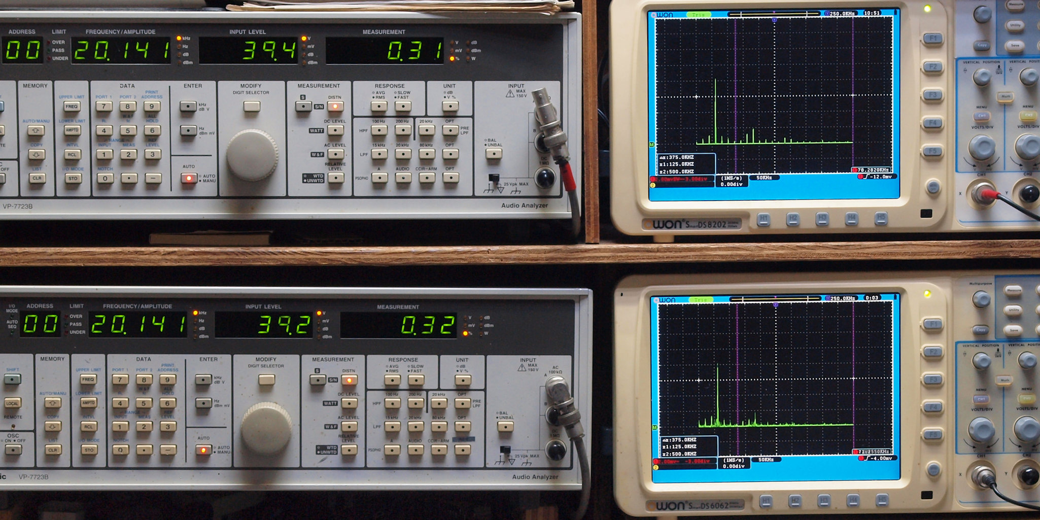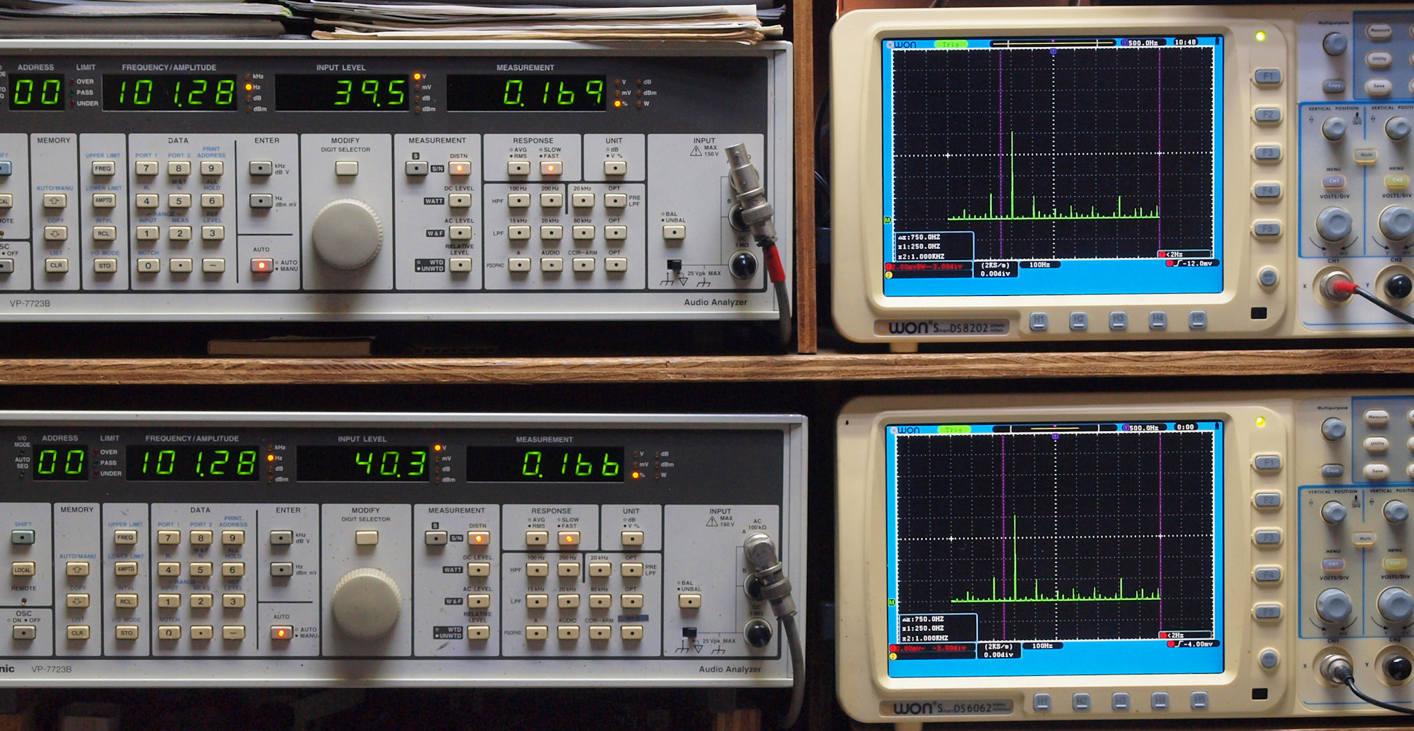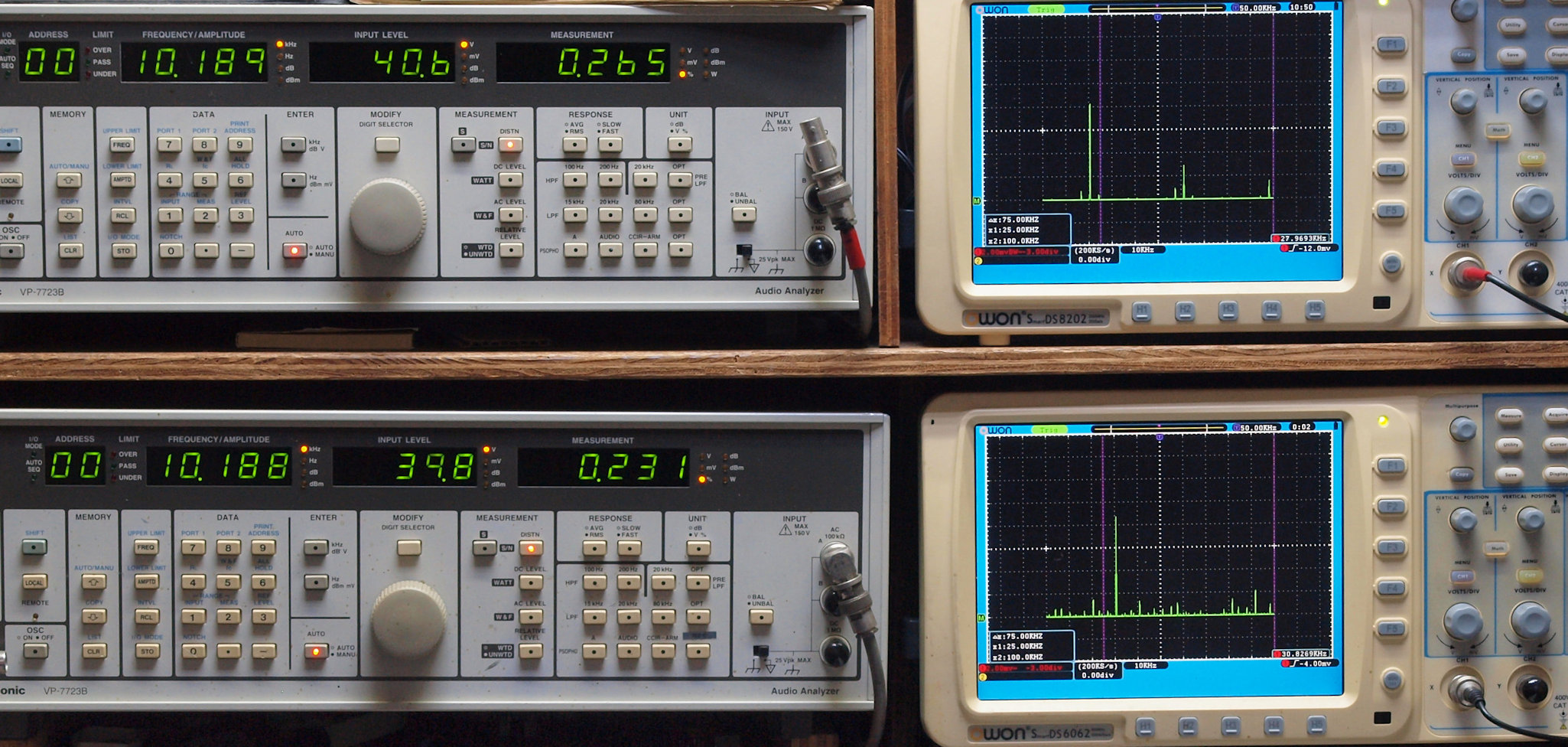 よって、ダイアル設定出力レベルより低なります。測定機器の仕様や整備の様子はこちら、「VP−7723B」「VP−7201A」。 FFT画面の見方はこちら。