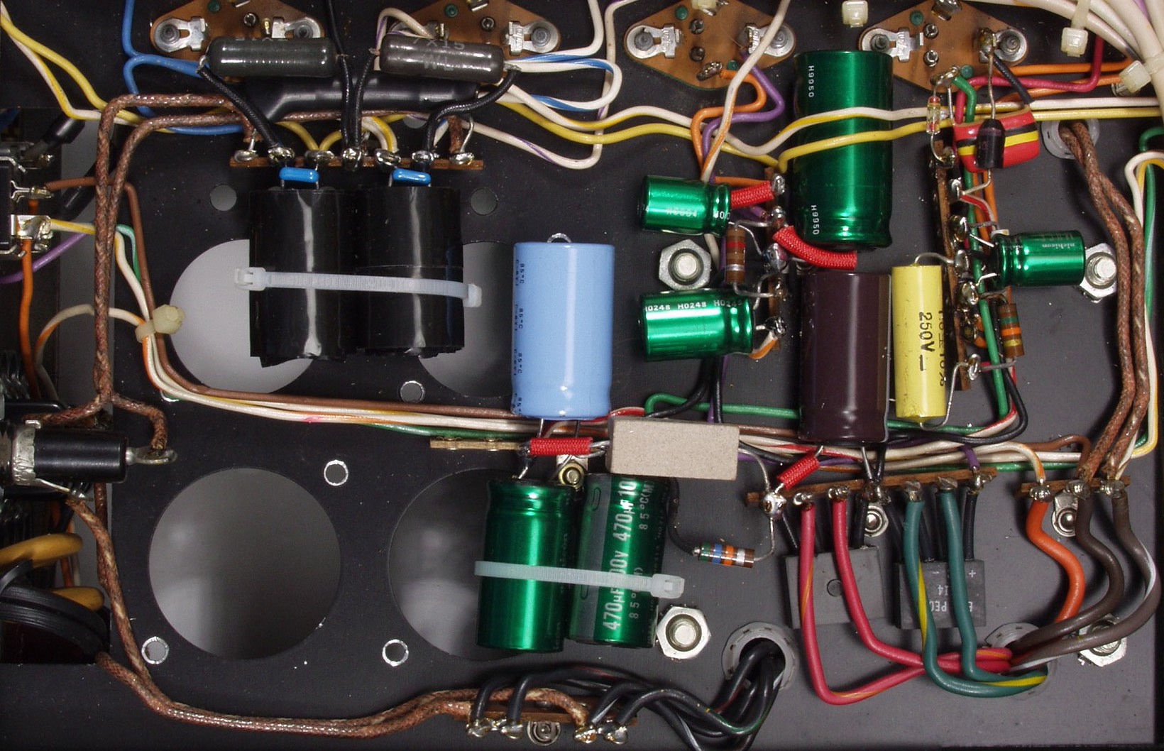 | C3B. 修理後 電源部分 電解コンデンサー9個増量交換、フイルムコンデンサー2個追加 | ||||||||||||||||||||||||||||||||||||||||||||||||||||||||||