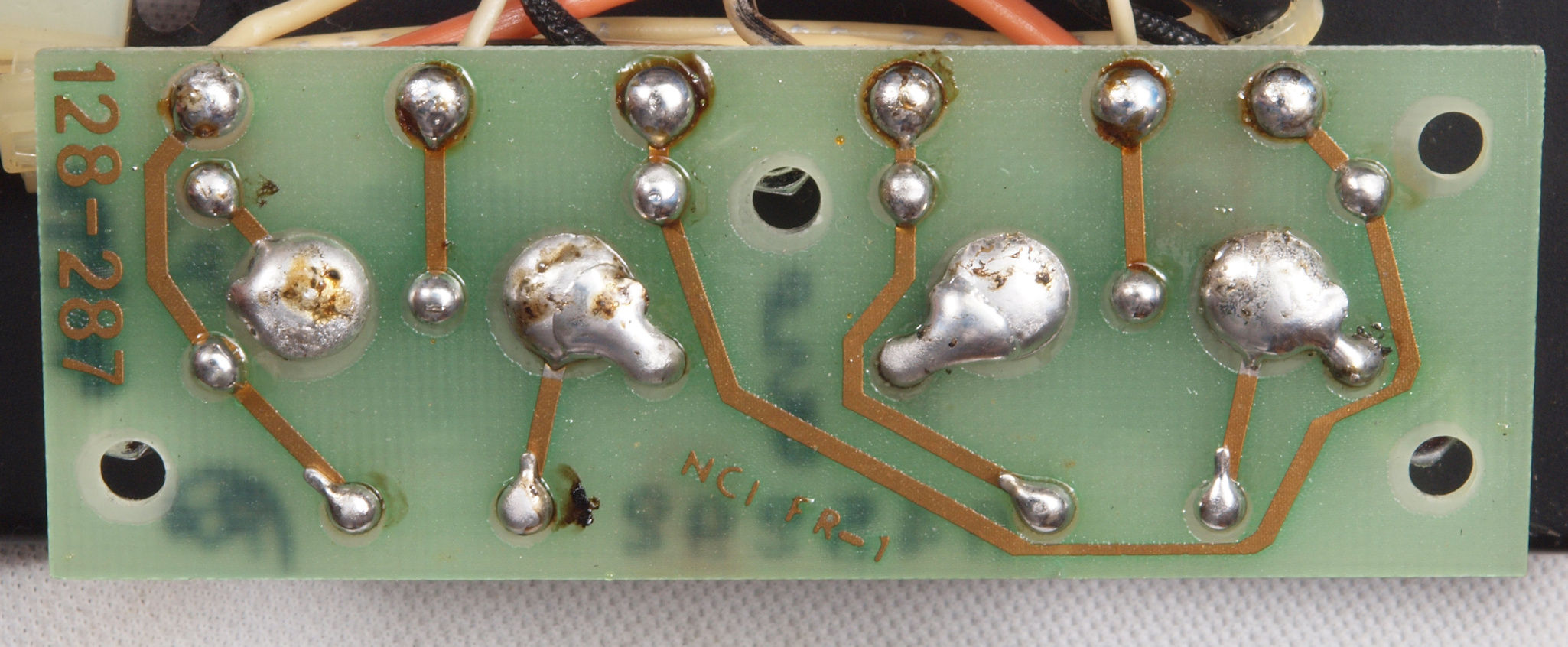 | C68. 修理中 BASSコントロール基板&TREBLコントロール基板、黒化した端子2。 | ||||||||||||||||||||||||||||||||||||||||||||||||||