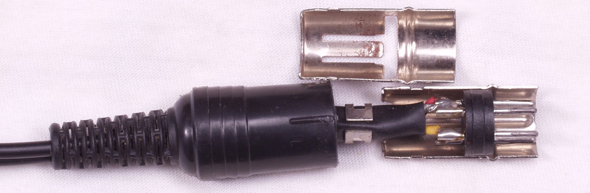 C3C. 修理中 出来れば上の様な締め付け型が良いが、ケーブルが細いので右下のを使用します