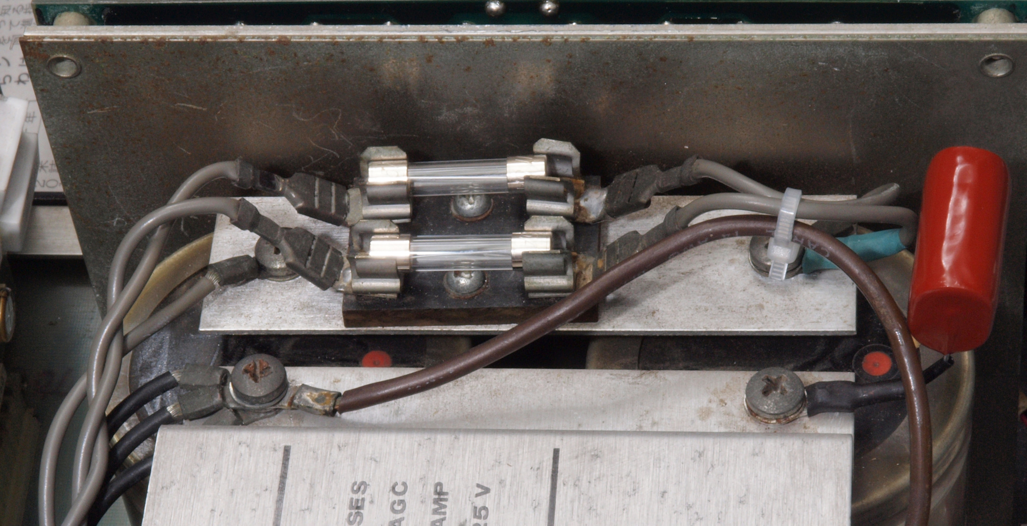 ユーザーは小出力使用なので、TR(トランジスター)保護の為、ヒューズ容量を下げ、速断に交換。