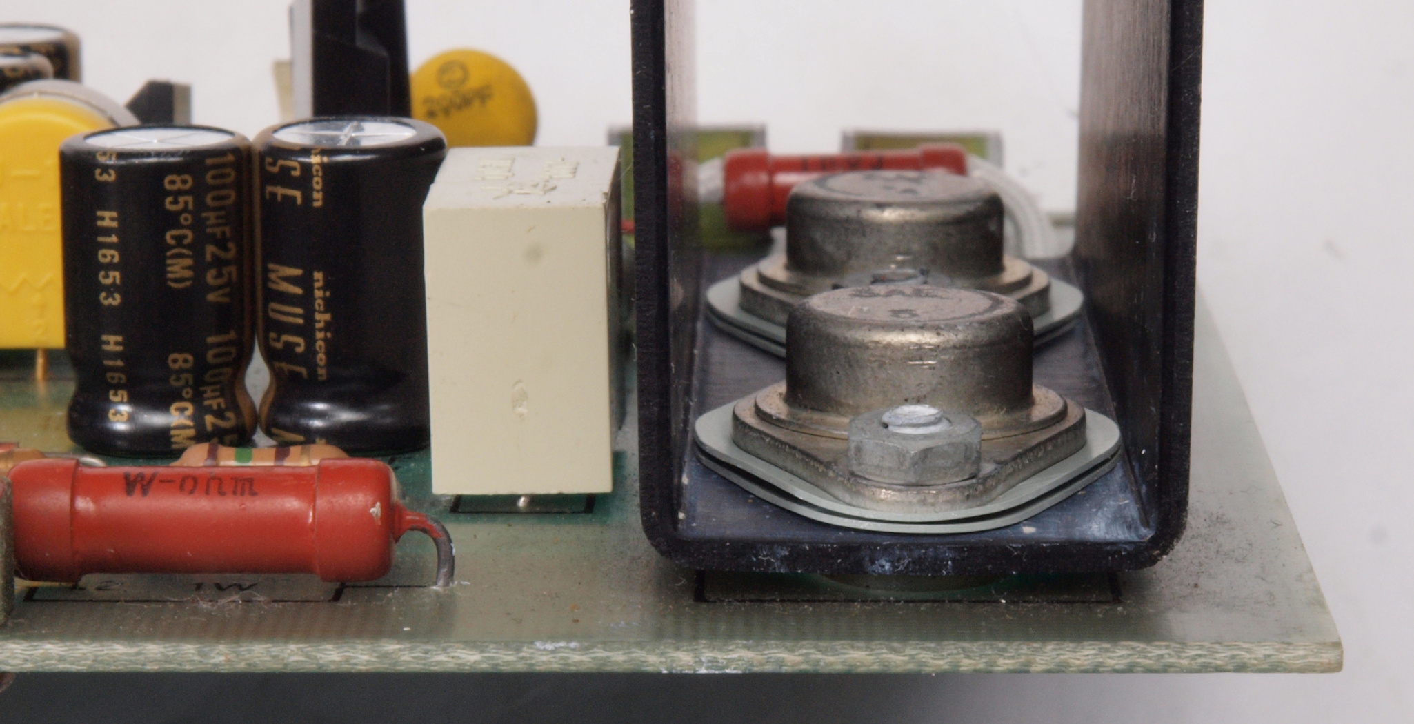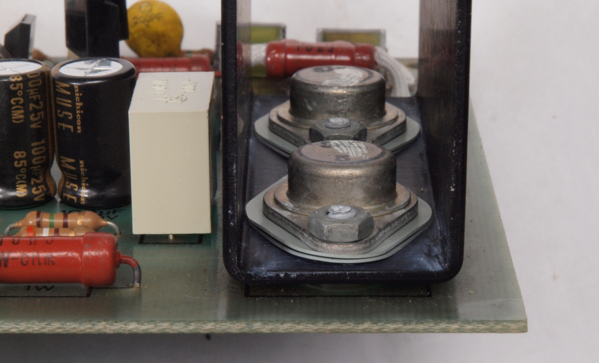 C32. 修理中 A側AMP基板。シリコン放熱シートが2枚重ね。誘電率対策化?