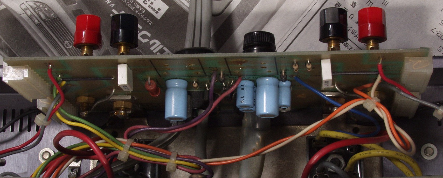C2D. 修理前 SP接続・プロテクト基板裏+電源電解コンデンサー基板裏