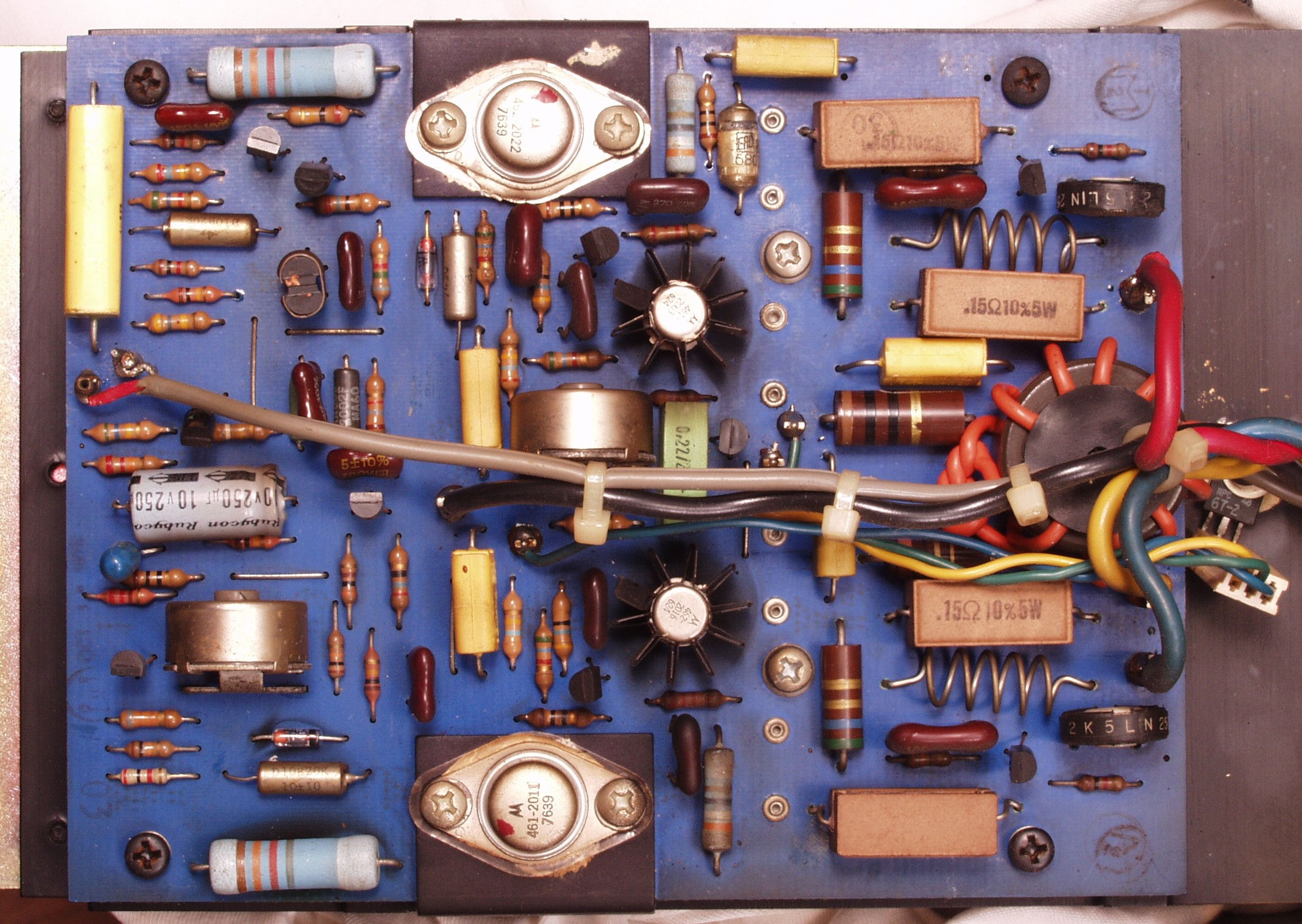 | C−2D. 修理後 L側AMP基板 TR(トランジスター)2個、電解コンンサー4個、半固定VR2個、フイルムコンデンンサー2個交換 | ||||||||||||||||||||||||||||||