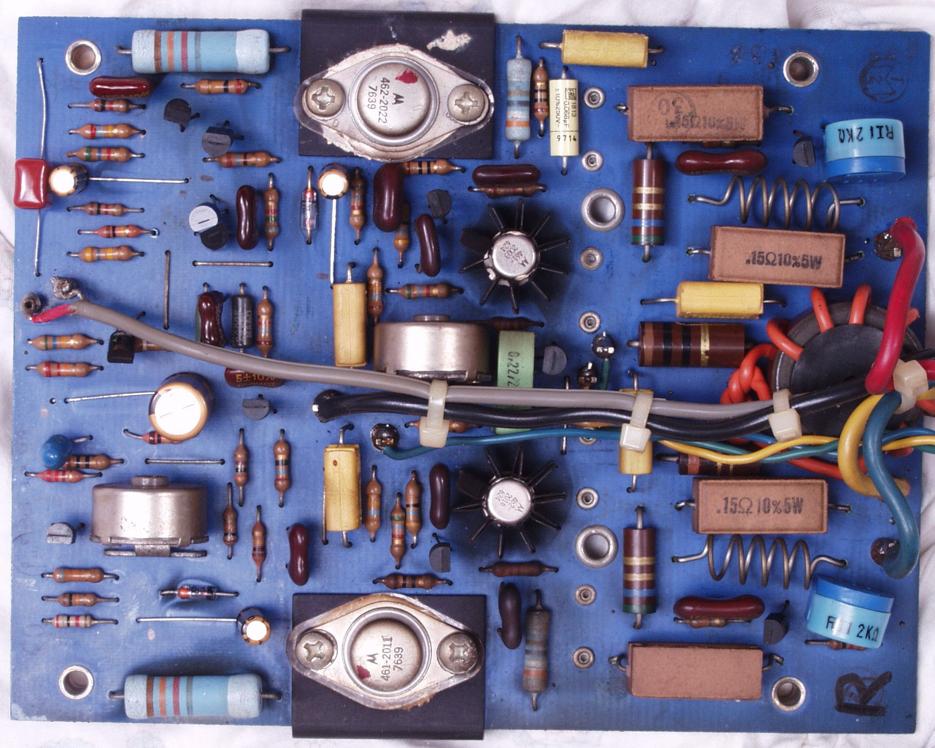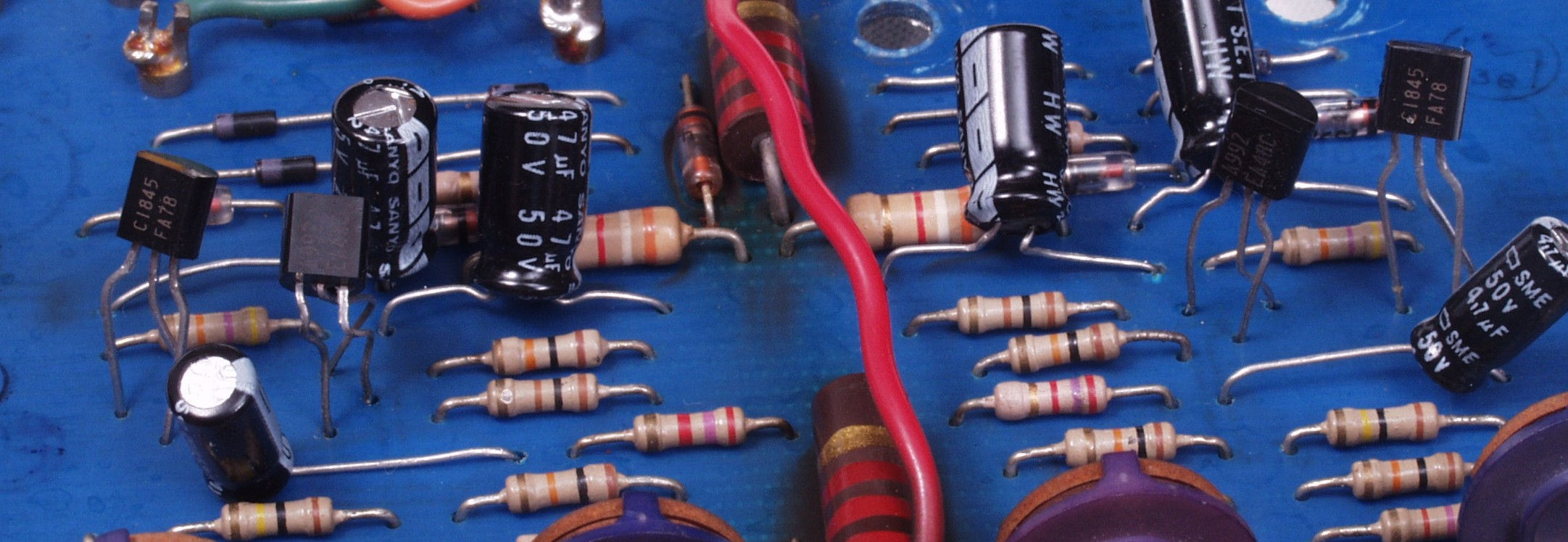 | C−1D. 修理後 R側AMP基板 TR(トランジスター)2個、電解コンンサー4個、半固定VR2個、フイルムコンデンンサー2個交換 | ||||||||||||||||||||||||||||||