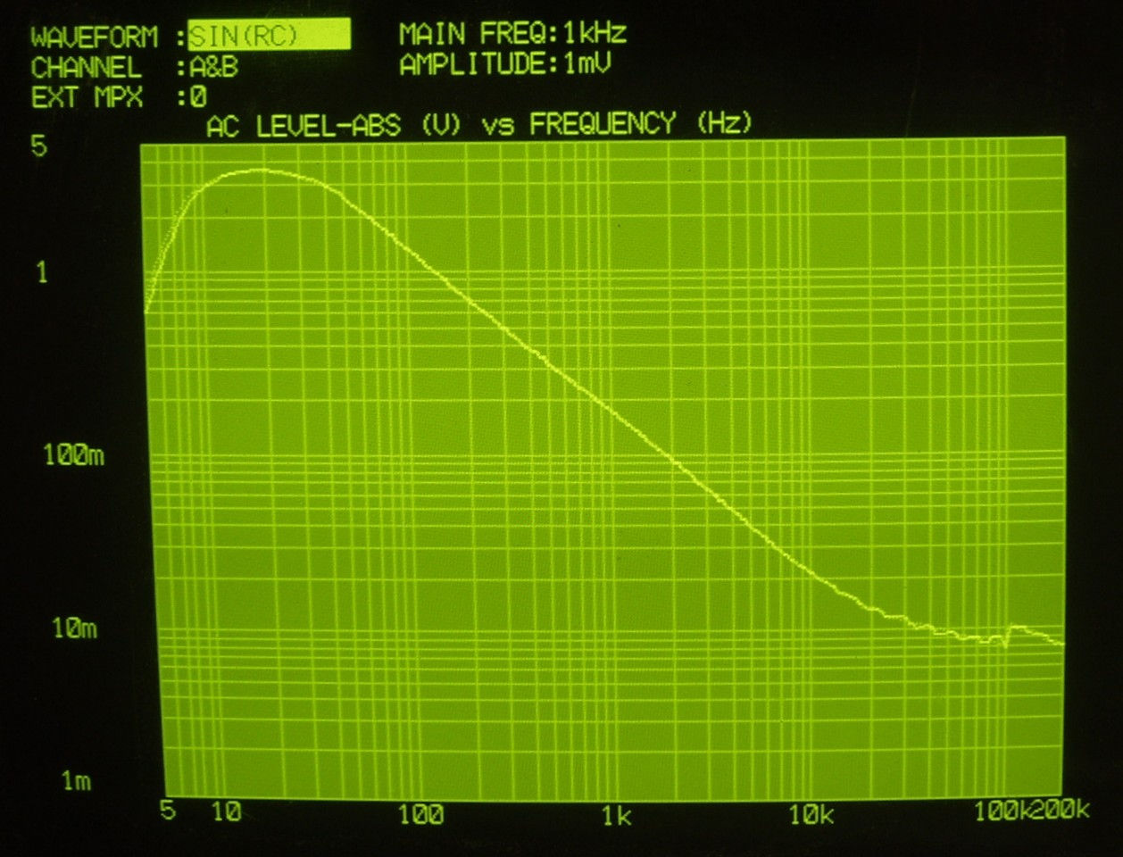 MM入力端子へ1mV一定入力 VRはmax 左出力=薄(細い)色 右出力=濃い(太い)色