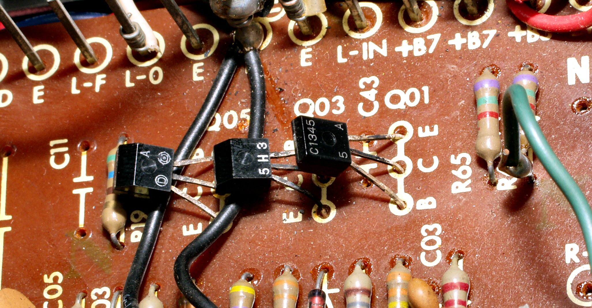 | C413. 修理前 プリAMP・ピークモニター基板、入力AMPの真っ黒な足のTR(トランジスター)2、交換する | ||||||||||||||||||||||||||||||||||||||||||||||