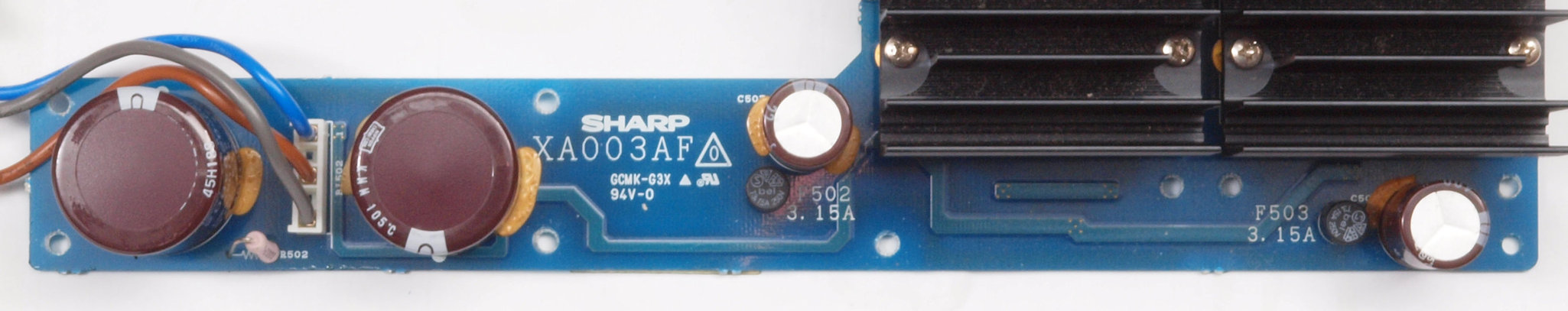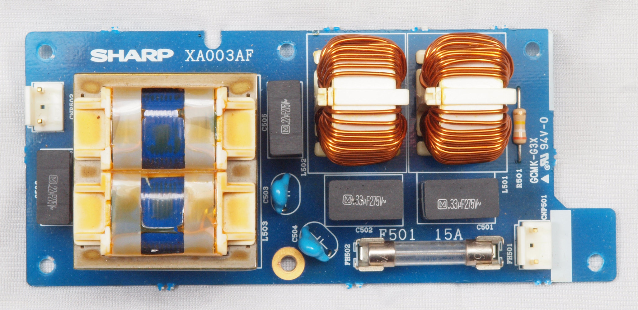 C51. 修理中 電源フイルター基板。 電源ヒューズは15A、 100V×15A=1.5KVA。