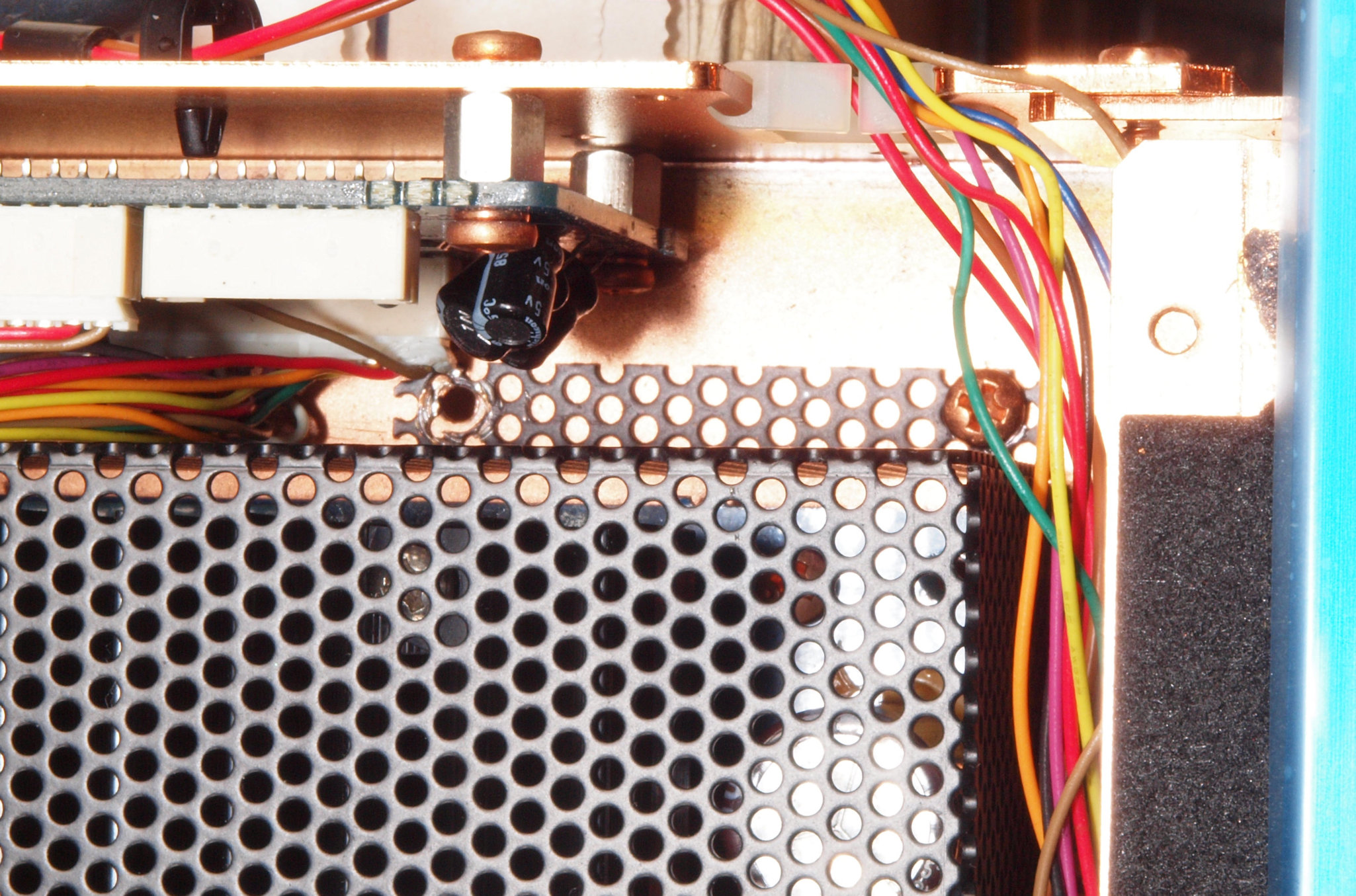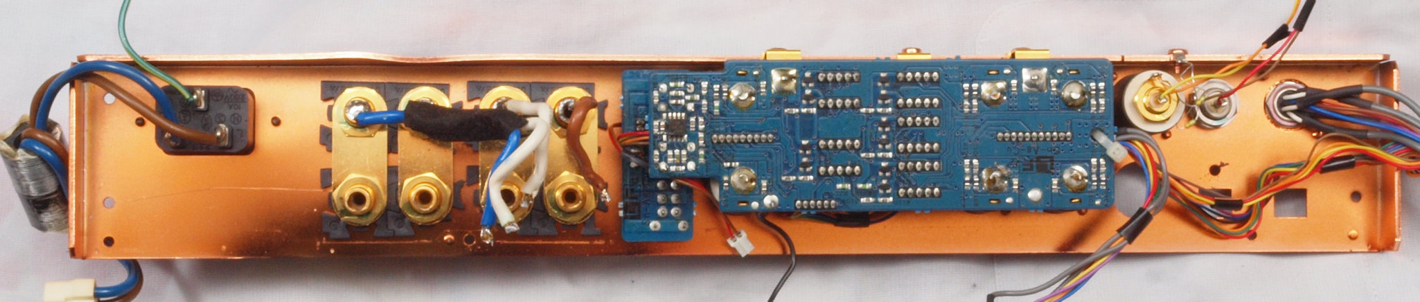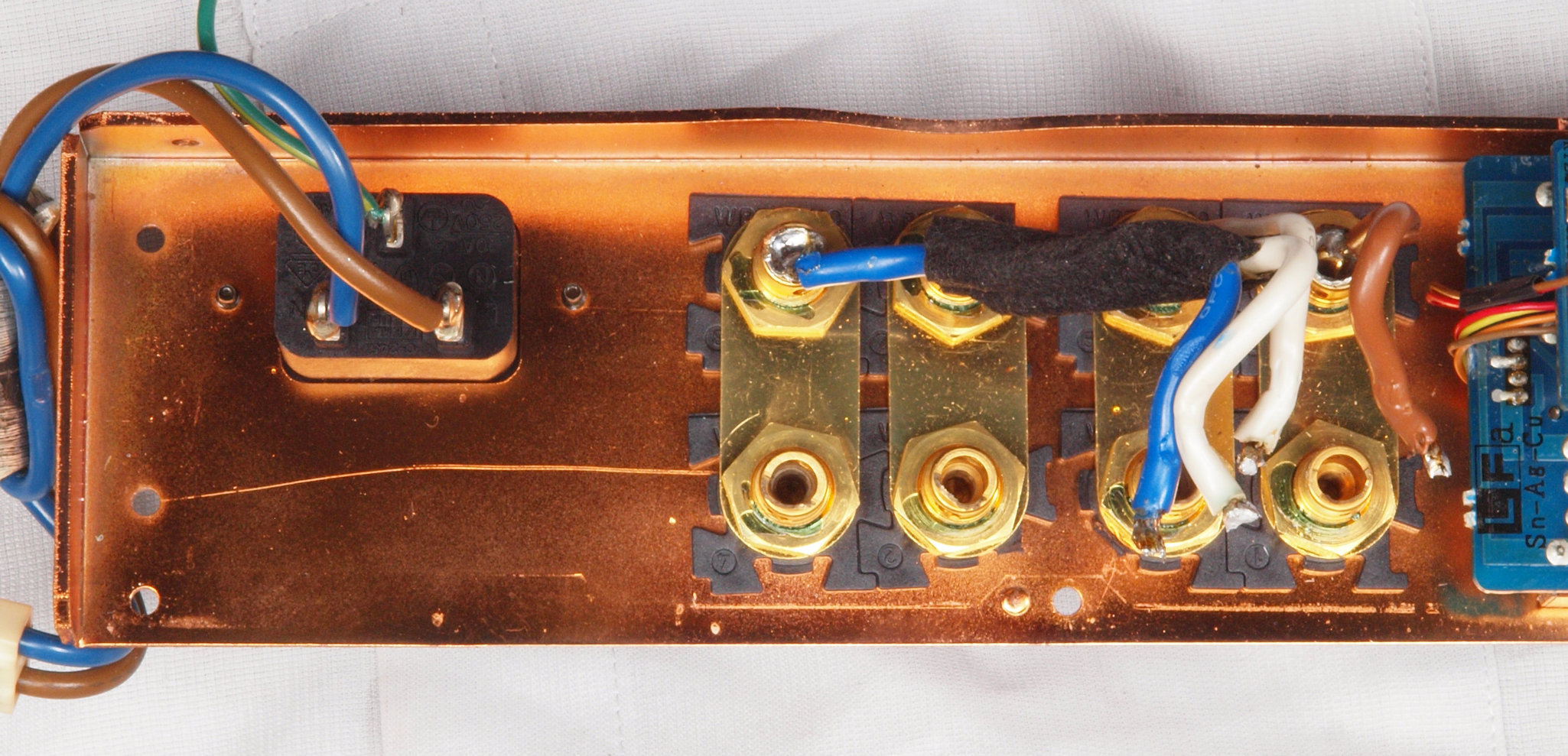 CA2. 修理中 3Pインレット、SP出力接続端子裏。SP接続端子に押され凹んでいる。