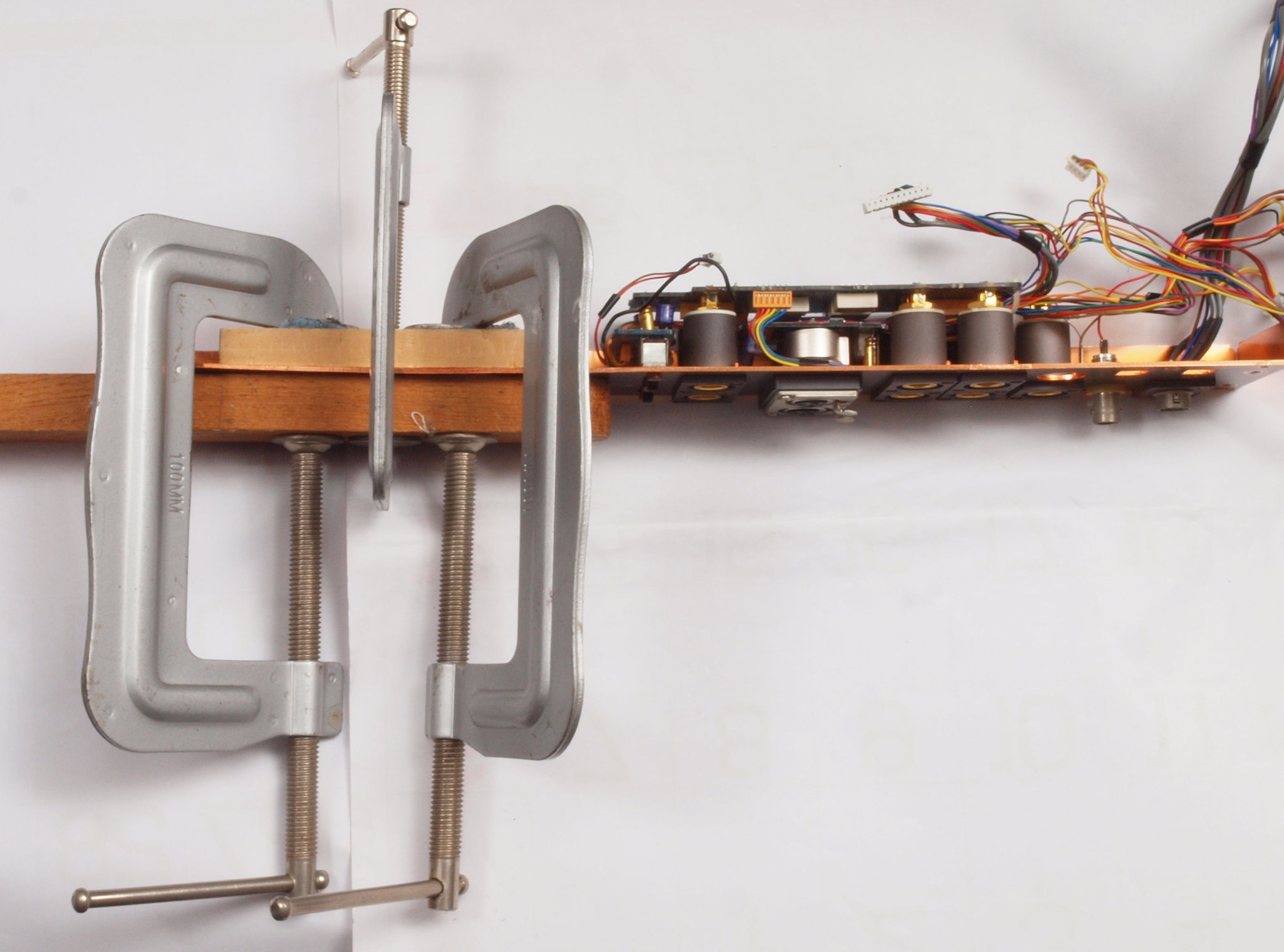 C71. 修理中 SP接続リレー基板。 リレー定格電流5Aなので、5A×5A×4Ω=200W。4オーム出力の時はバイワイヤーが良い。