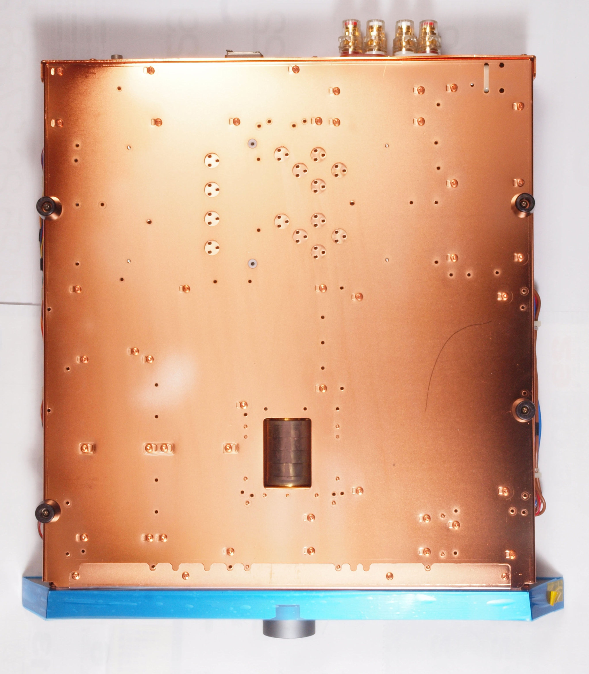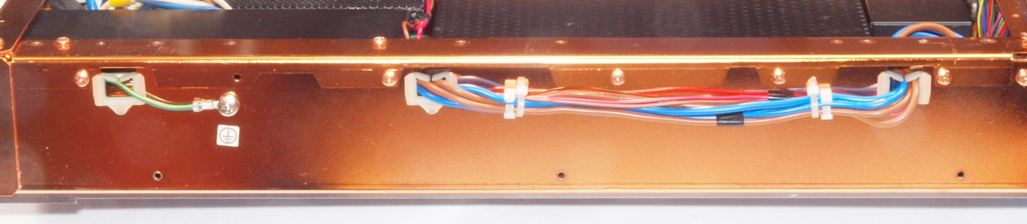 CA5. 修理中 後パネル裏SP出力接続取り付け部。SP接続端子に押され凹んでいる。