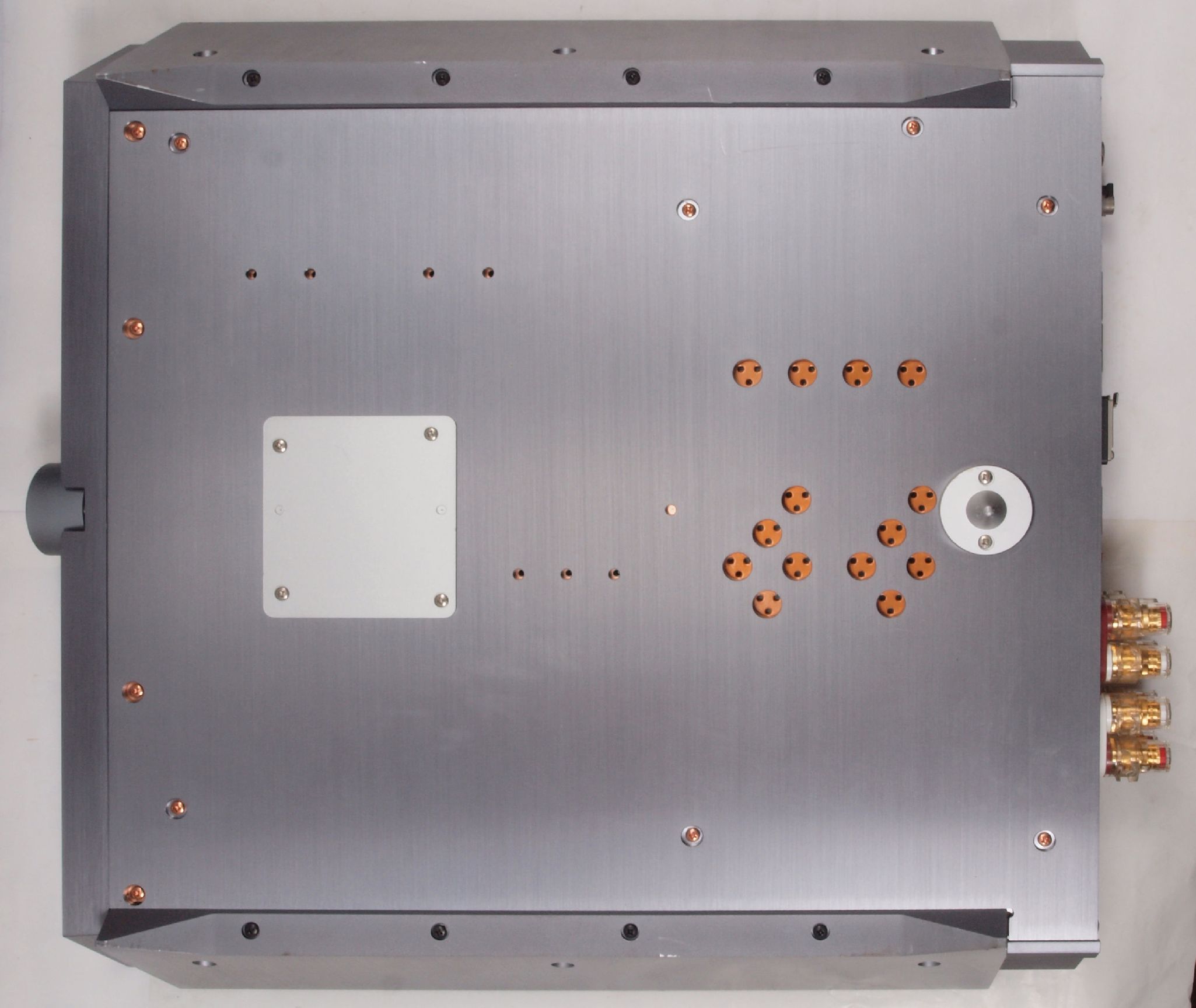 A23. 点検中 上下蓋・左右パネル・センターブースを取り、左横から見る。左パネル押さえ止ビスを2本無。