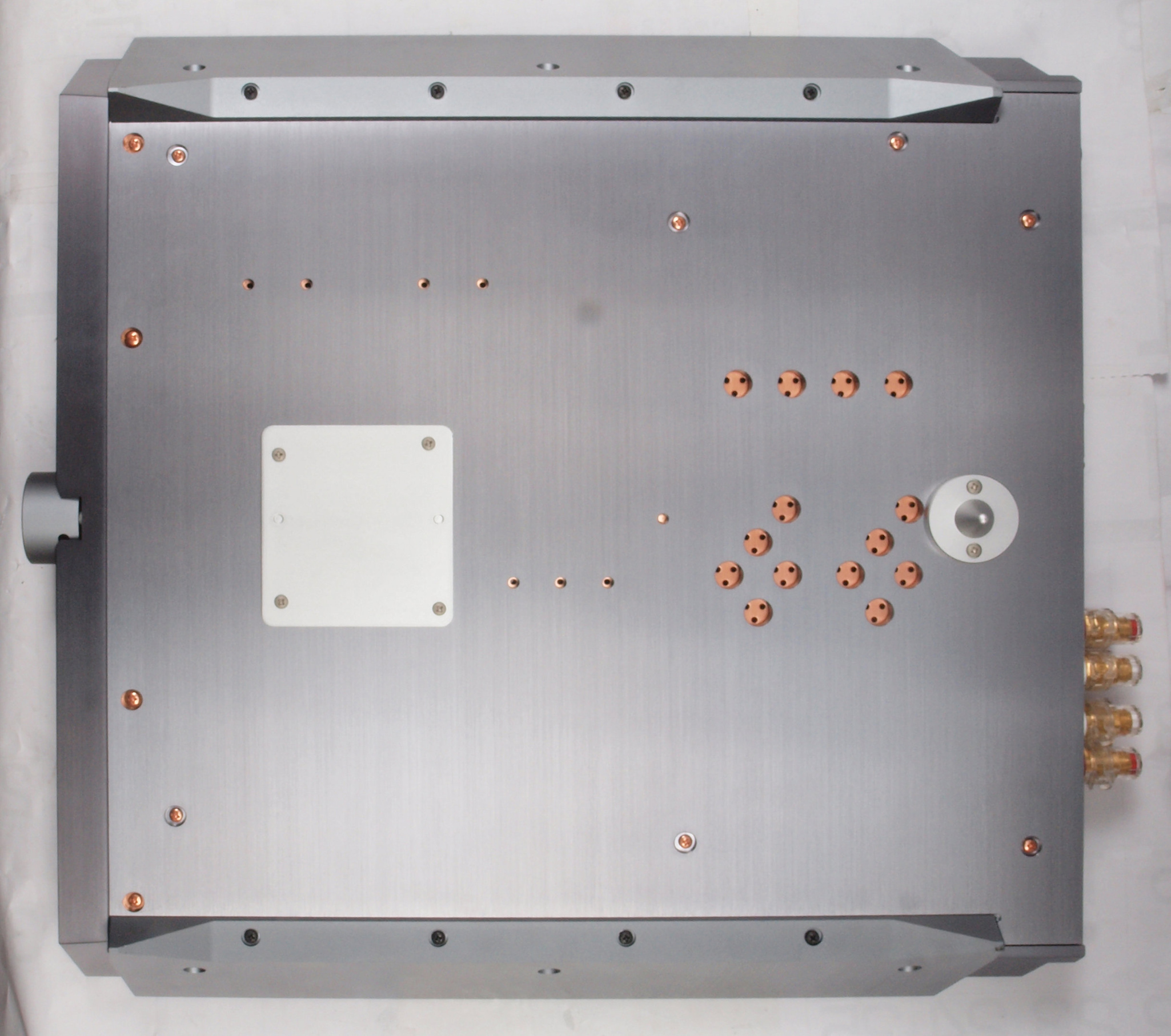 | A23. 点検中 上下蓋・左右パネル・センターブース・左右パネル押さえ・1Bitアンプシールドを取り、上から見る。 |