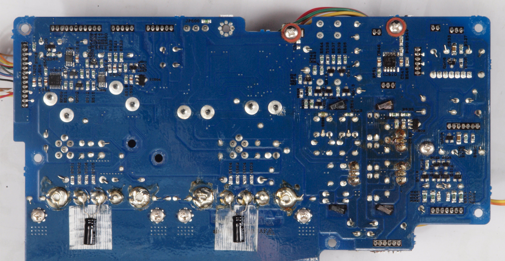 | CA2. 修理中 3Pインレット、SP出力接続端子裏。 |