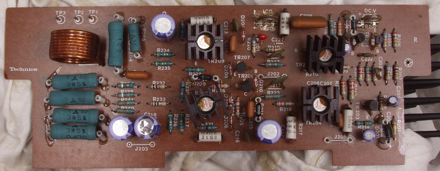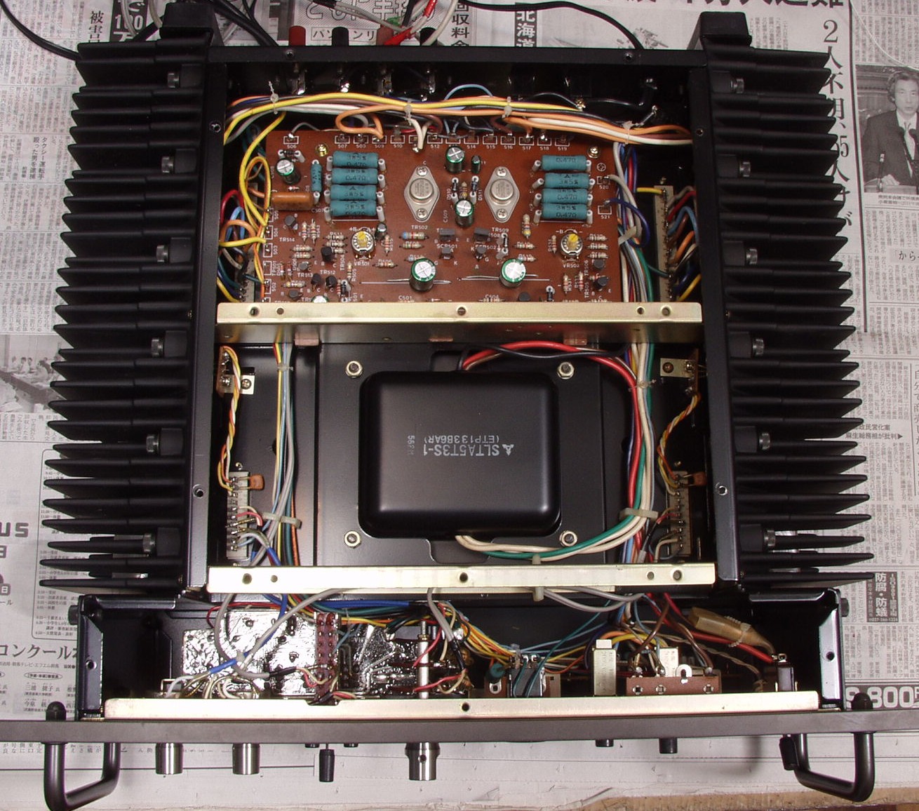 | 寸評 終段TR(トランジスター)の供給電圧まで安定化した理想的なAMPです。 途中で基盤改造がありますので、未対策器は修理した方が良いです(対作品は「2a」のシールが添付) 高域の発振対策を施し、安全の為、フューズを挿入した |