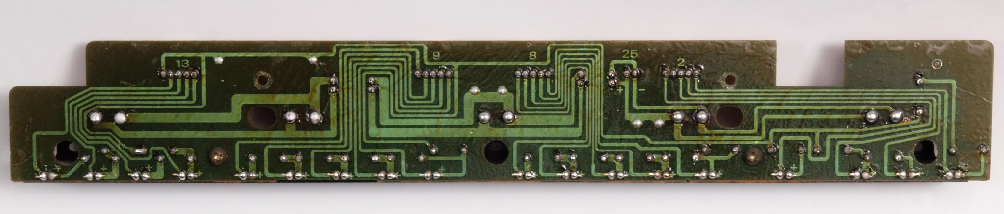 | CE4. 修理(半田補正)後 トレー操作基板裏。 全ての半田をやり直す。 | ||||||||||||||||||||||||||||||||||||||||||||||||