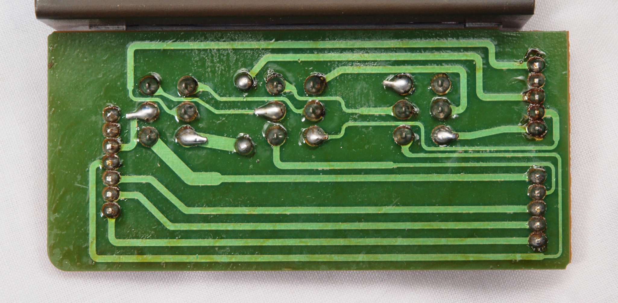 | CE4. 修理(半田補正)後 トレー操作基板裏。 全ての半田をやり直す。 | ||||||||||||||||||||||||||||||||||||||||||||||||