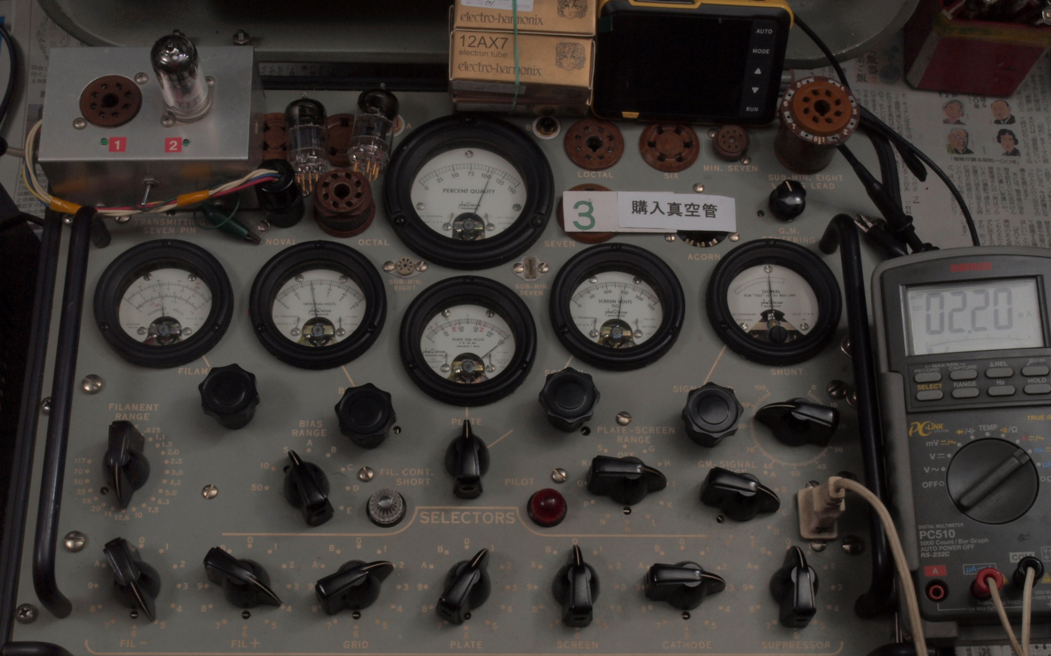 | V22. 購入2本目「12AX7」ユニット2。 Gm測定=2200μmho、IP=2.23mA。 |