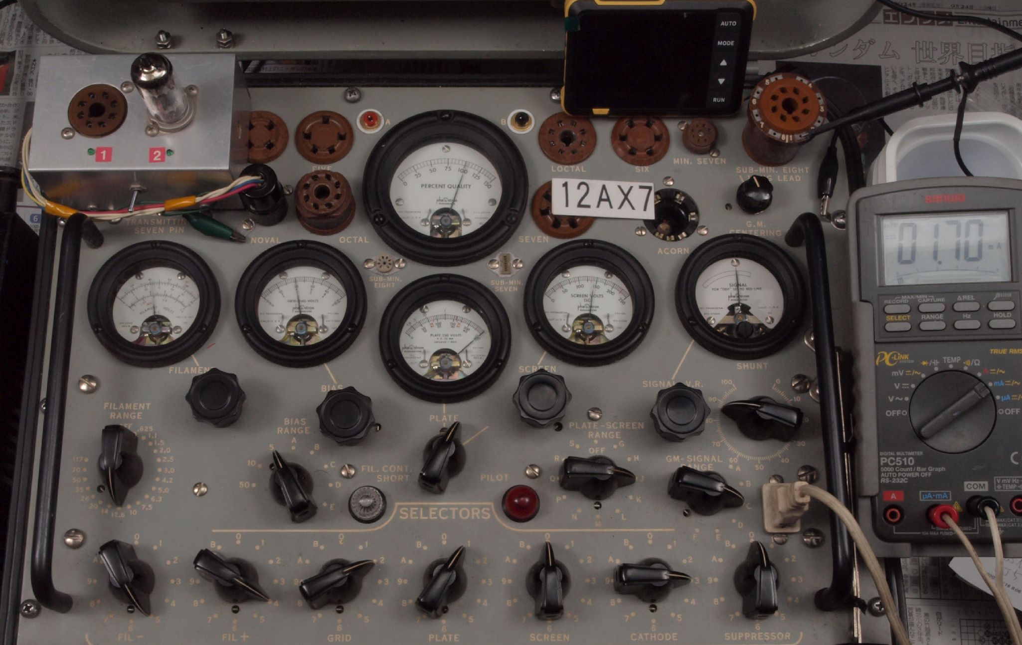 | V51. 付属真空管12AX7 ユニット1。 Gm測定=2140μmho、IP=1.71mA。 Cレンジ=3000μmhoレンジでの測定、「Ep=250V、Eg1=−2V」 |