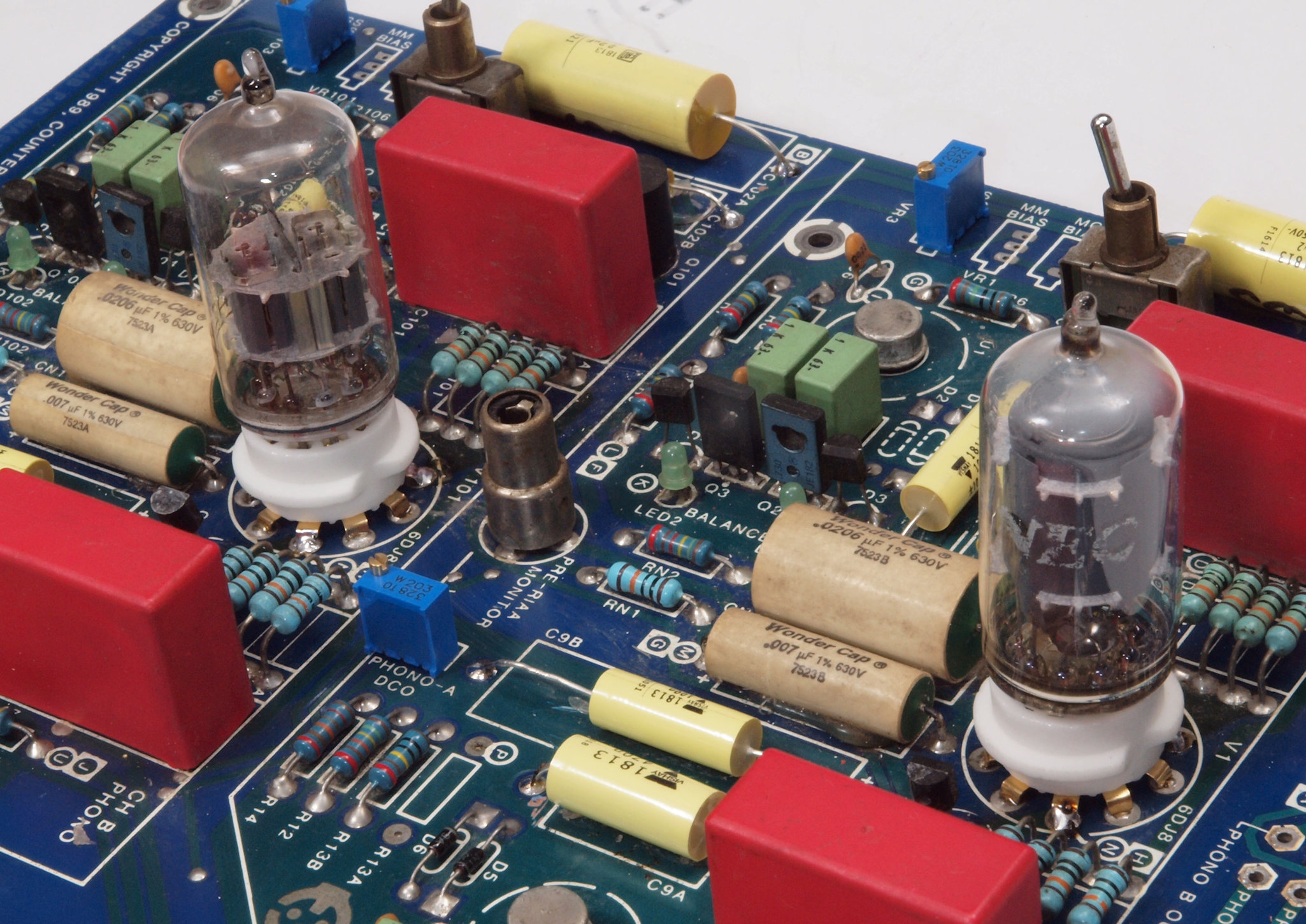 | AA1. 点検中 付属真空管。 左から6DJ8、...12AX7、6CA4 | ||||||||||||||||||||||||||||||||||||||