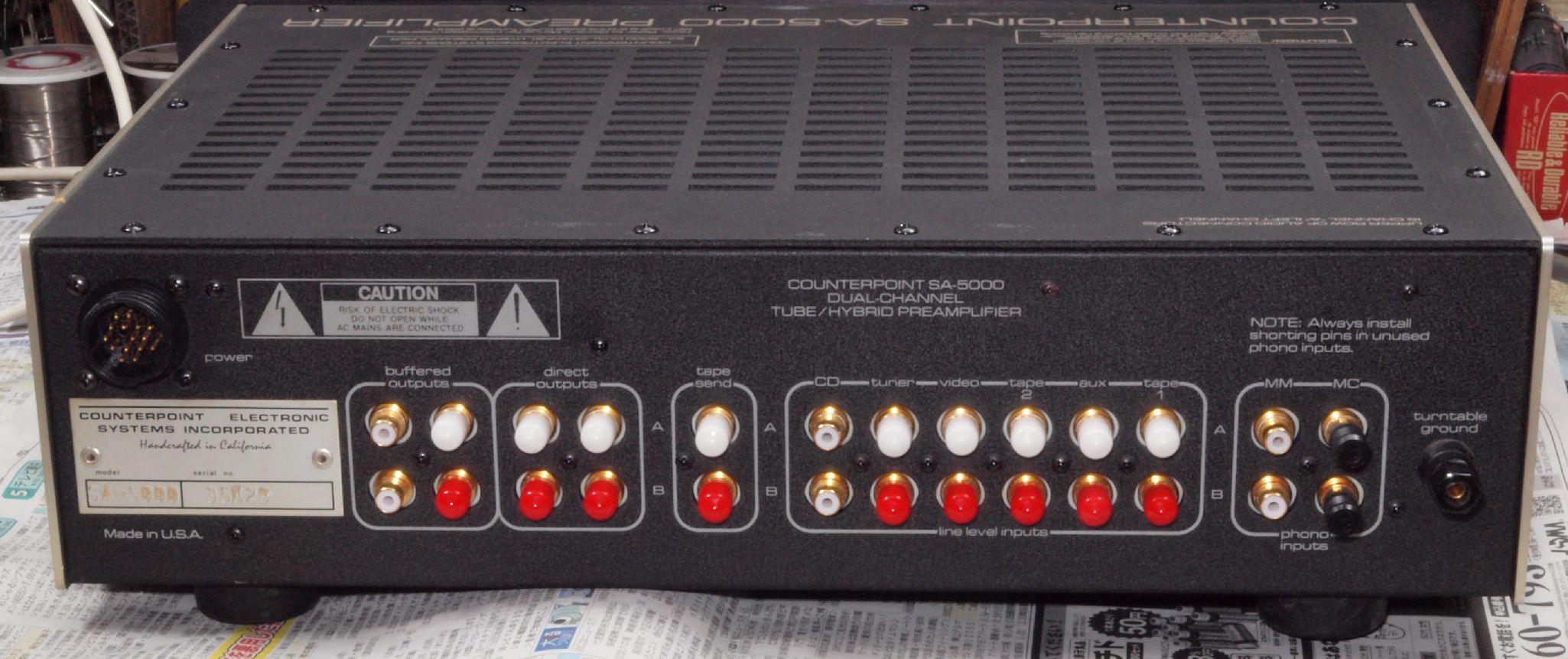 E. 調整・測定 F. 上位測定器による 調整・測定 G. 修理費 180,000円 オーバーホール修理。3台目からの、お馴染みさん価格。 真空管6922EH(6DJ8)4本、ECC803S 1本を含む。 S. CounterPoint SA−5000 の仕様(カタログ・マニアルより) Y. ユーザー宅の設置状況 |