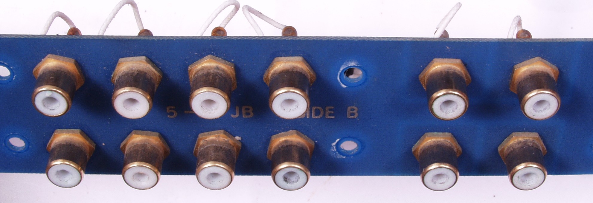 | A34. 点検中 上=ユーザーから送られてきたRCA端子、外ネジタイプ、シャシから絶縁しにくいし、絶縁が薄い 下=小生が良く使用する内ネジタイプ |