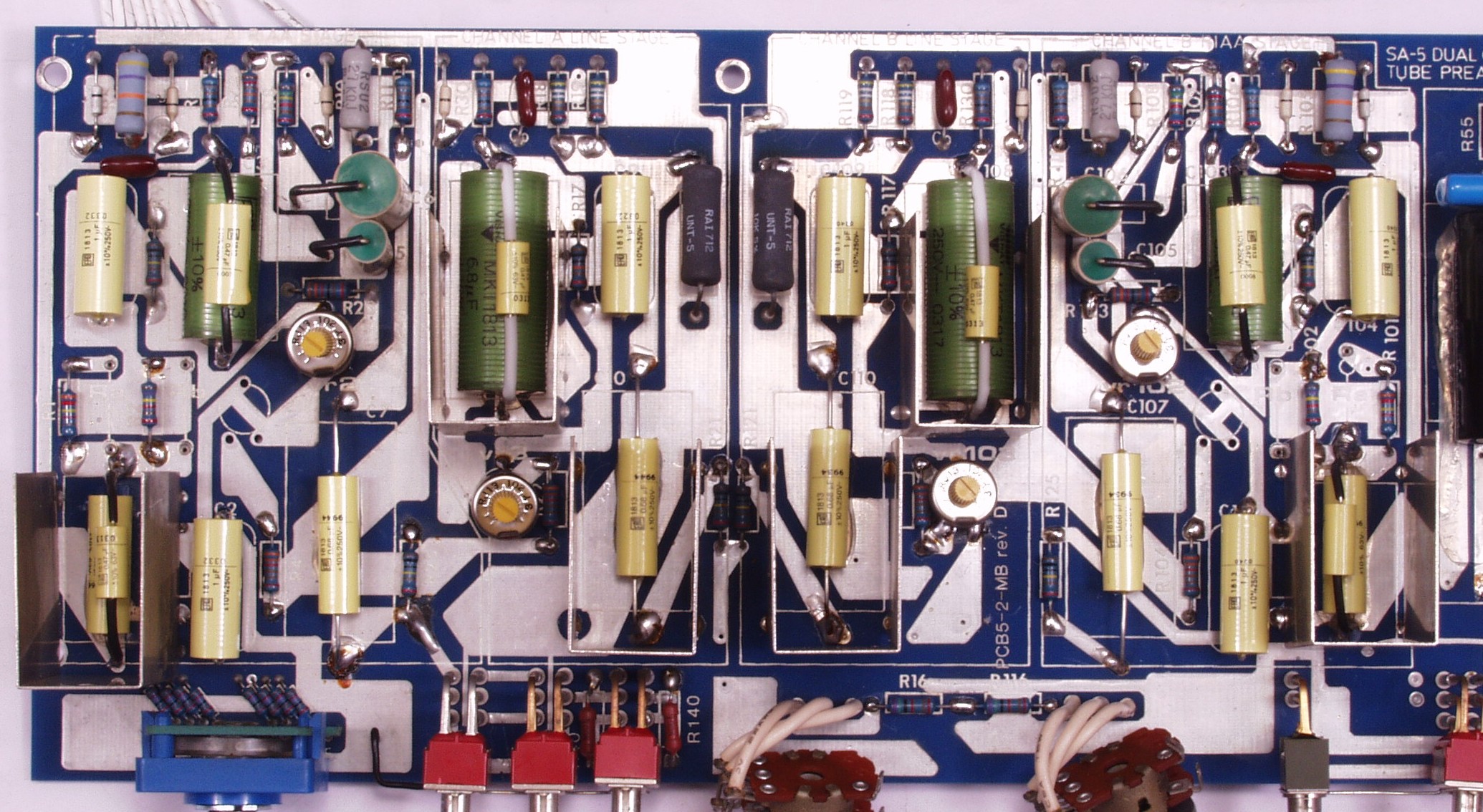 | C12. 修理前 AMP基板 チャネルごとの入力VRは将来の「ガリ」に備えてWで使用 | ||||||||||||||||||||||||