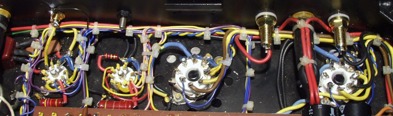 又、右側KT−88のヒ−タ−配線を増強する(左のUSソケットに入る空色/黄色の線) |