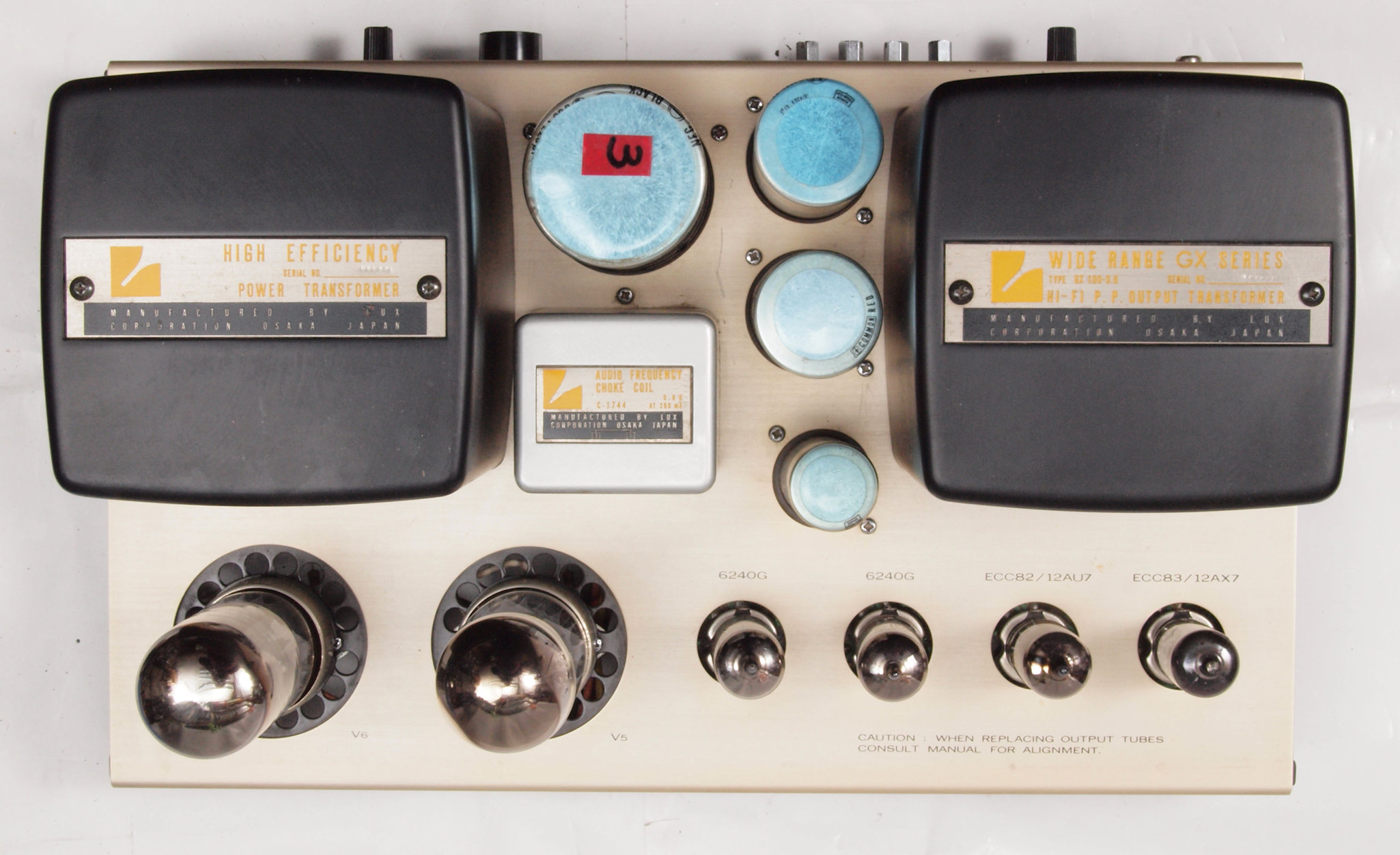 | U2. 付属真空管。 「6240G」、2本。 LUX6240Gの付属規格表から、6240G相互コンダクタンス=3500μmho、「Ep=250V、Ip=7mA、Eg1=−5V」。 |
