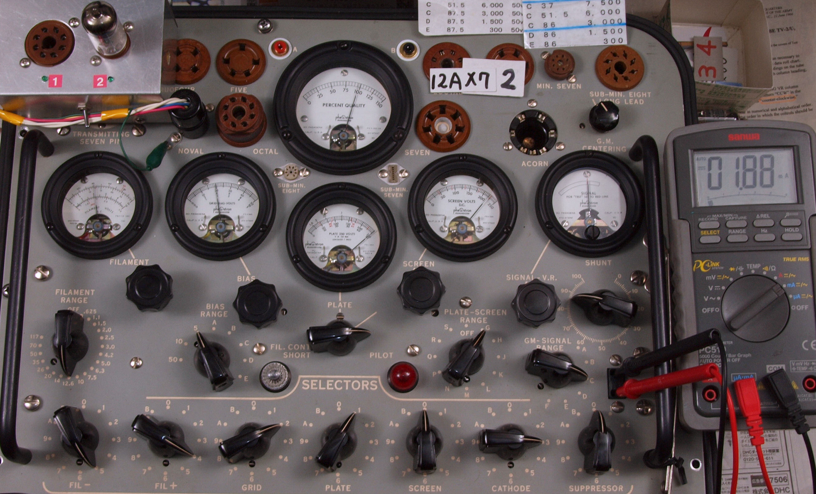 | U421. 付属2本目12AX7ユニット1。 Gm測定=2160μmho、IP=2.2mA。 Cレンジ=3000μmhoレンジでの測定、「Ep=250V、Eg1=−2V」 |