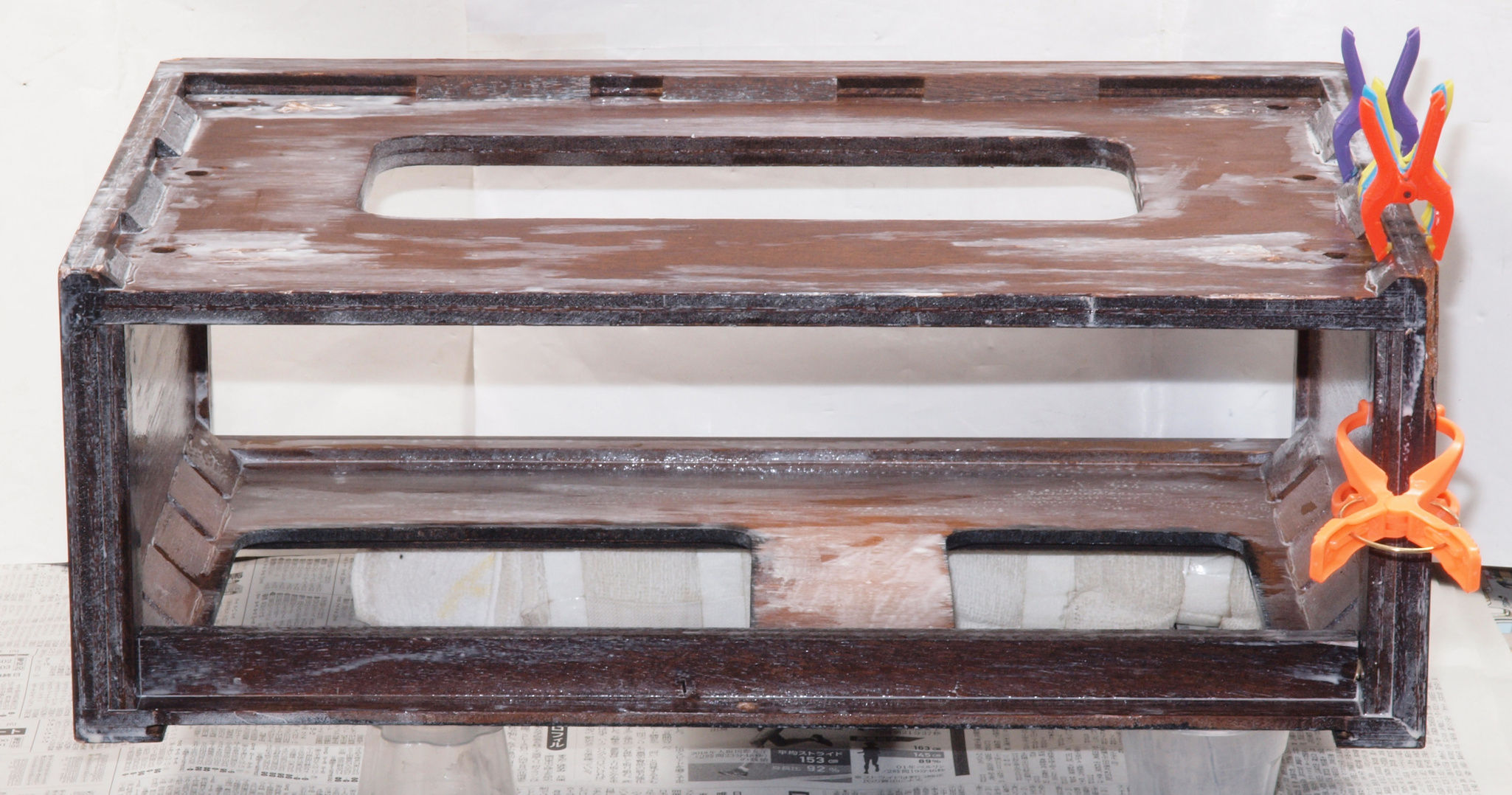 | K. 裏パネルと木製ケース修理。 画像をクリックすると、大きく(横幅2050ドット)表示されます。 K01. 修理前 ガラリパネル。 |