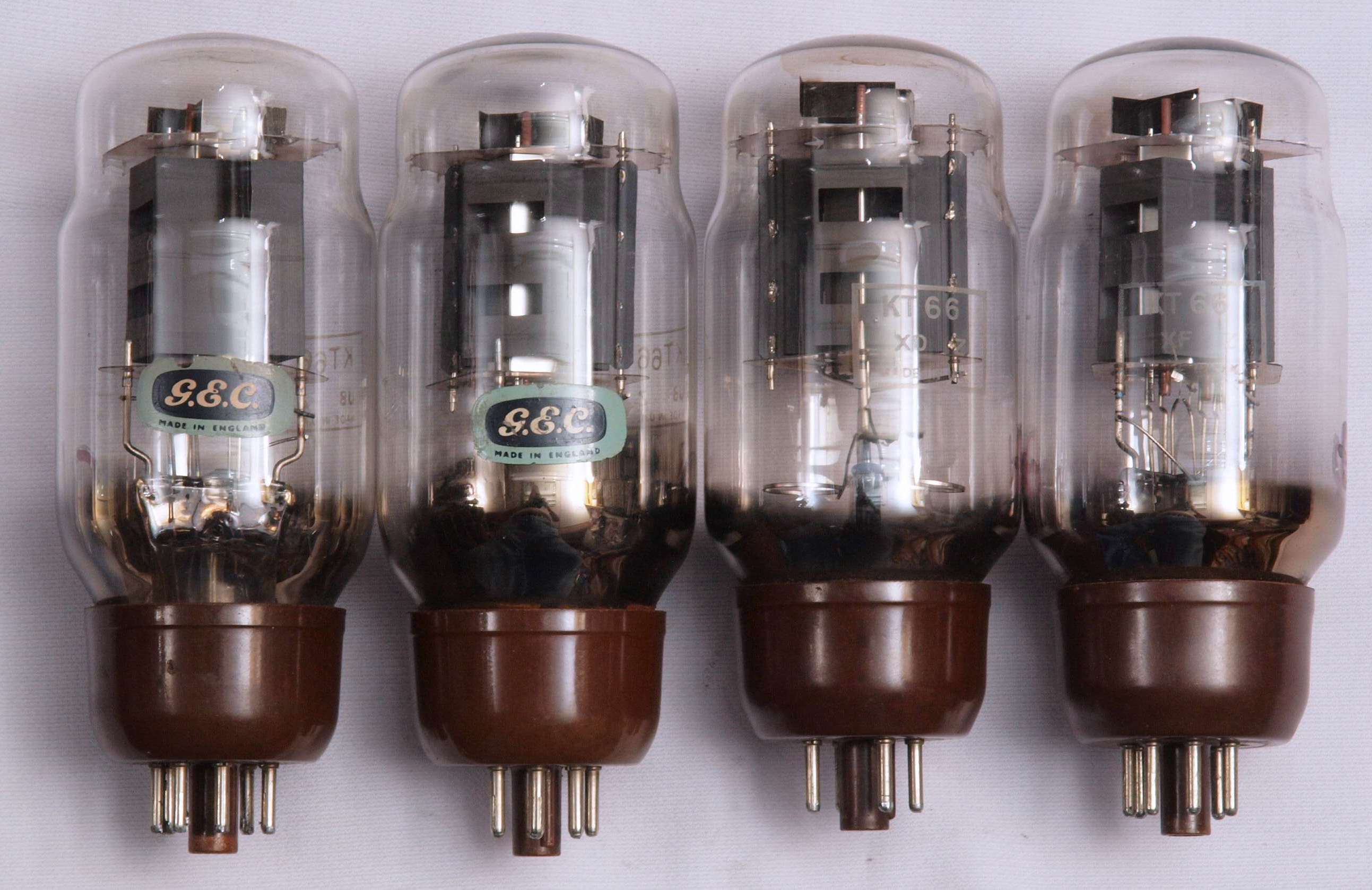 | U2. 付属真空管 「KT66」、左から1、2本目=QUADU C用。3、4本目=QUADU D用。 | ||||||||||||||||||||||
